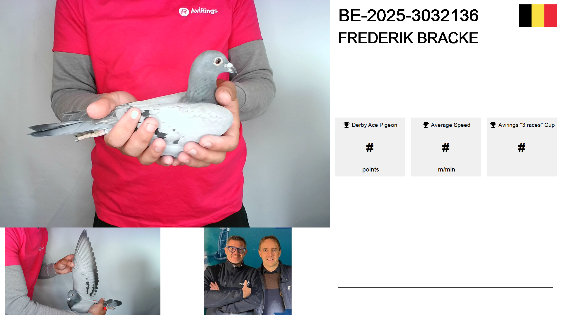 | Race | Position | Number of pigeons | Percent | Speed | Distance |