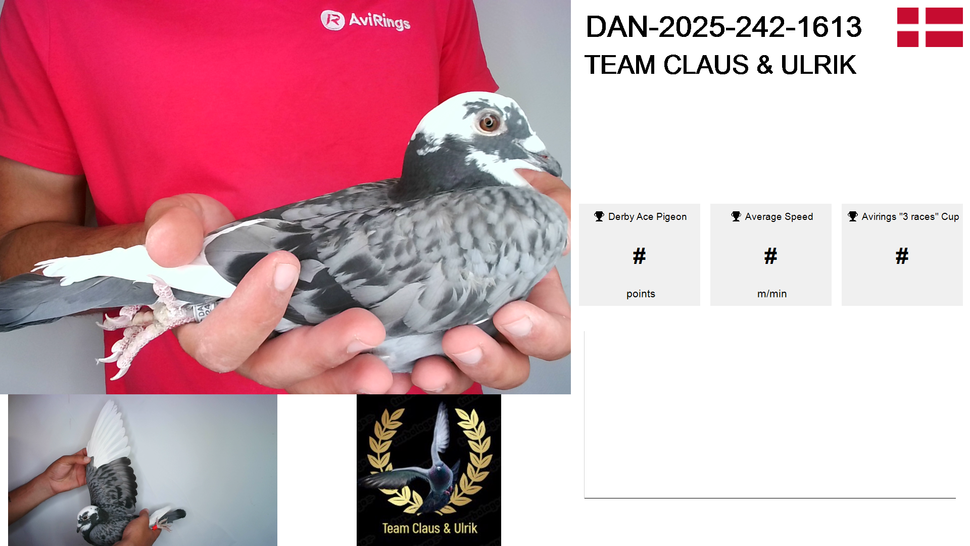 | Race | Position | Number of pigeons | Percent | Speed | Distance |