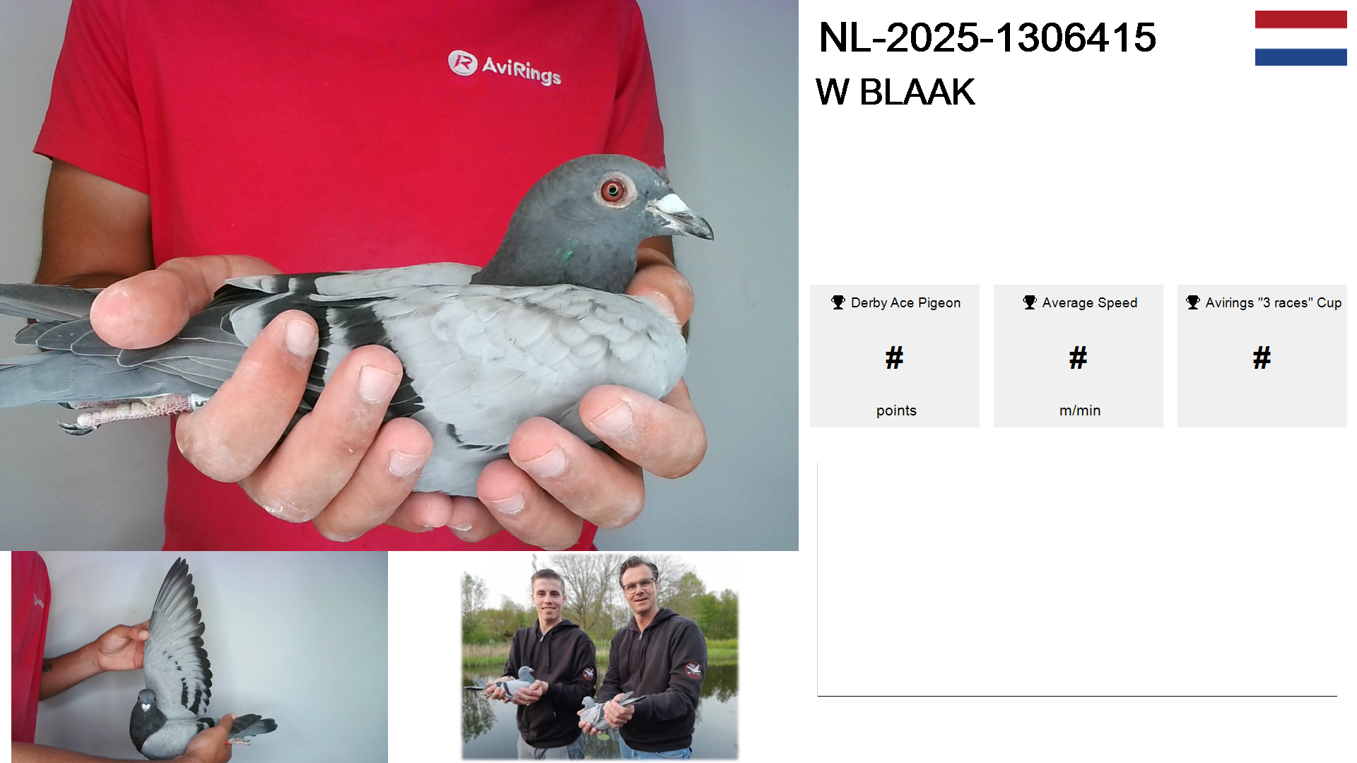 | Race | Position | Number of pigeons | Percent | Speed | Distance |