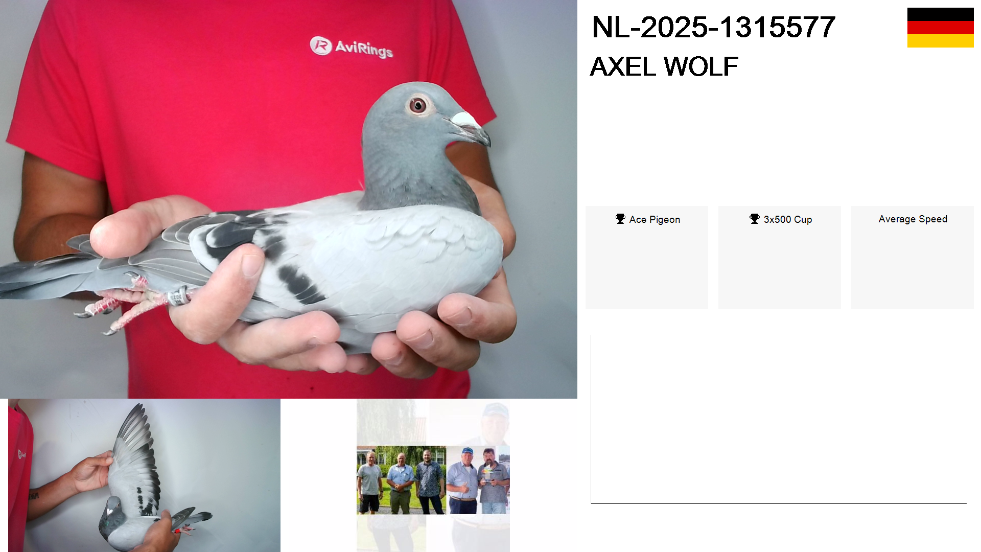 Race | Position | Number of pigeons | Percent | Speed | Distance |