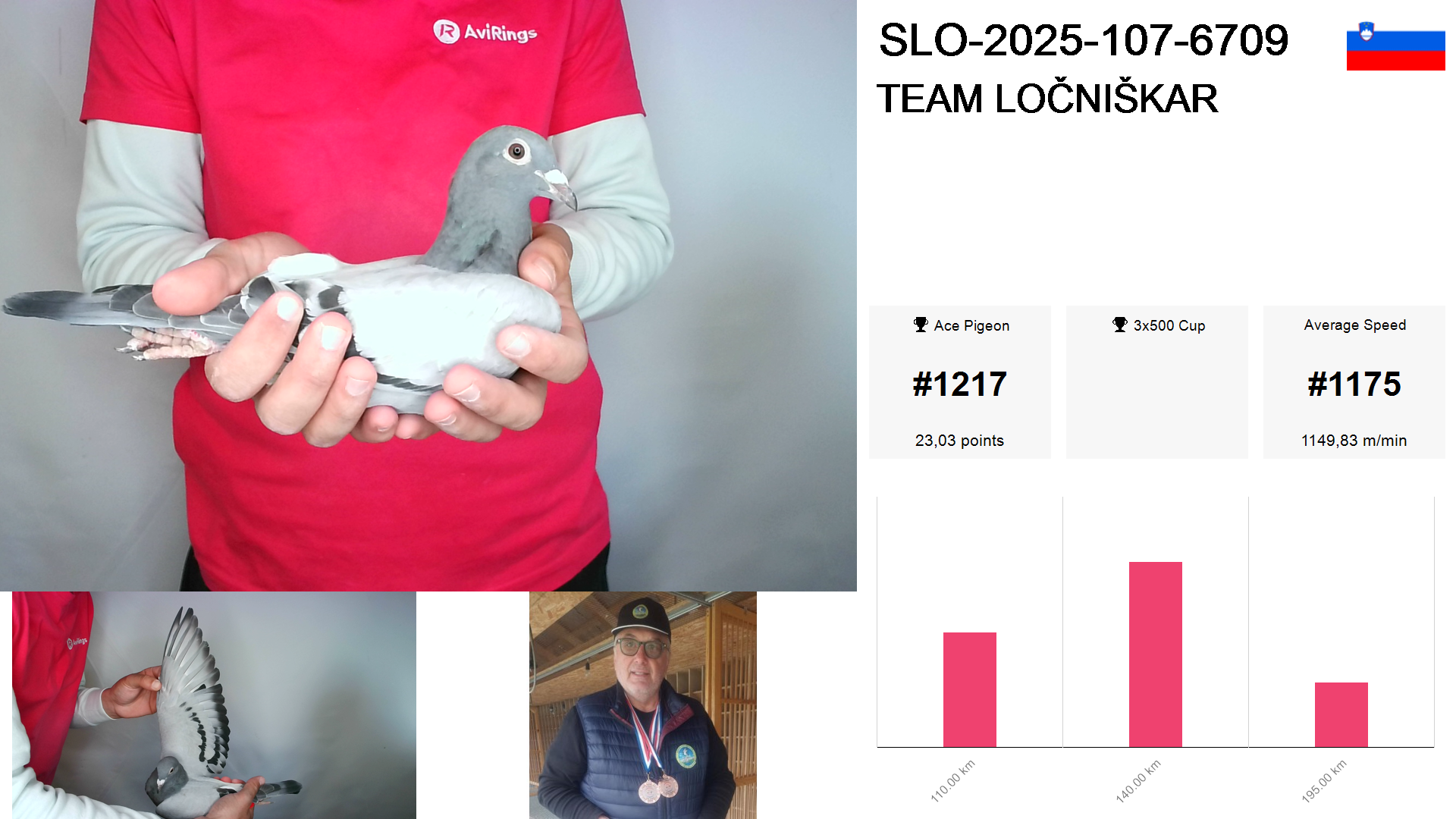 Race | Position | Number of pigeons | Percent | Speed | Distance |