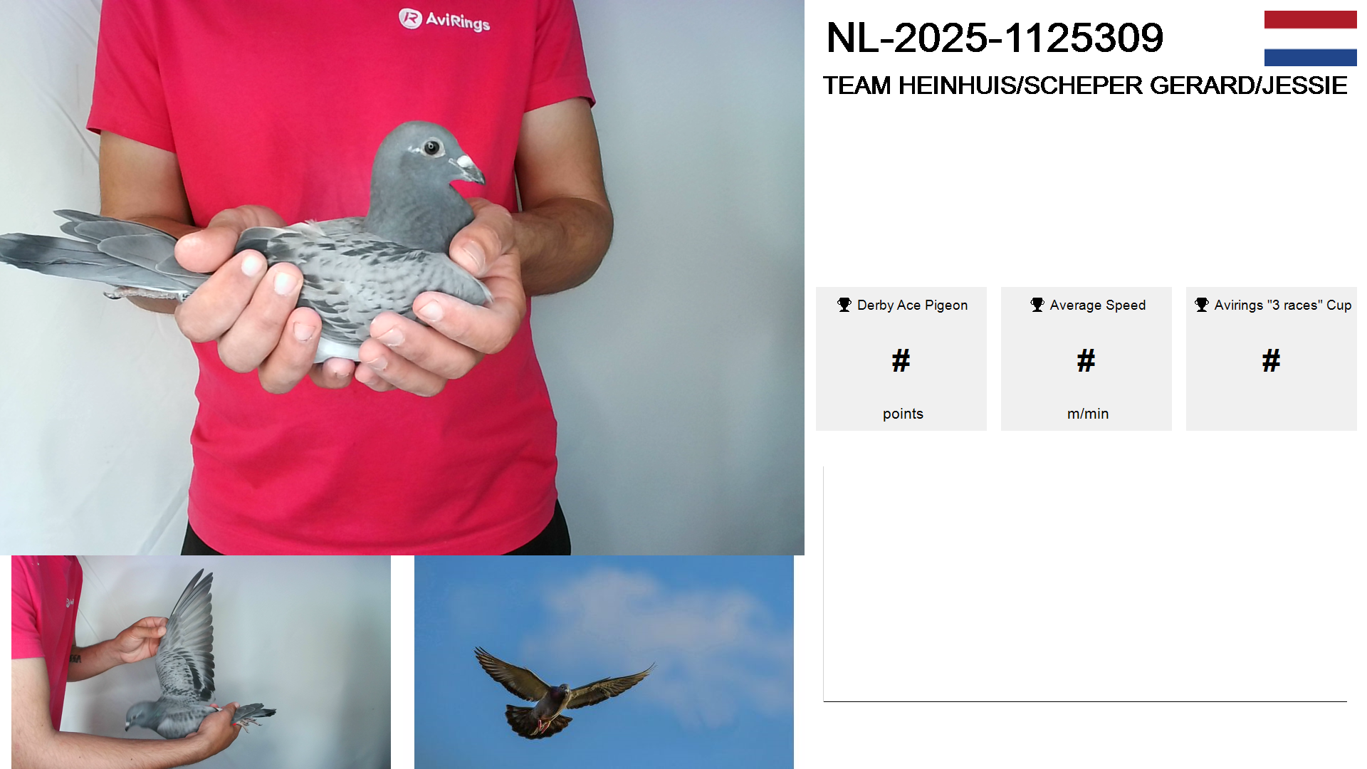 | Race | Position | Number of pigeons | Percent | Speed | Distance |