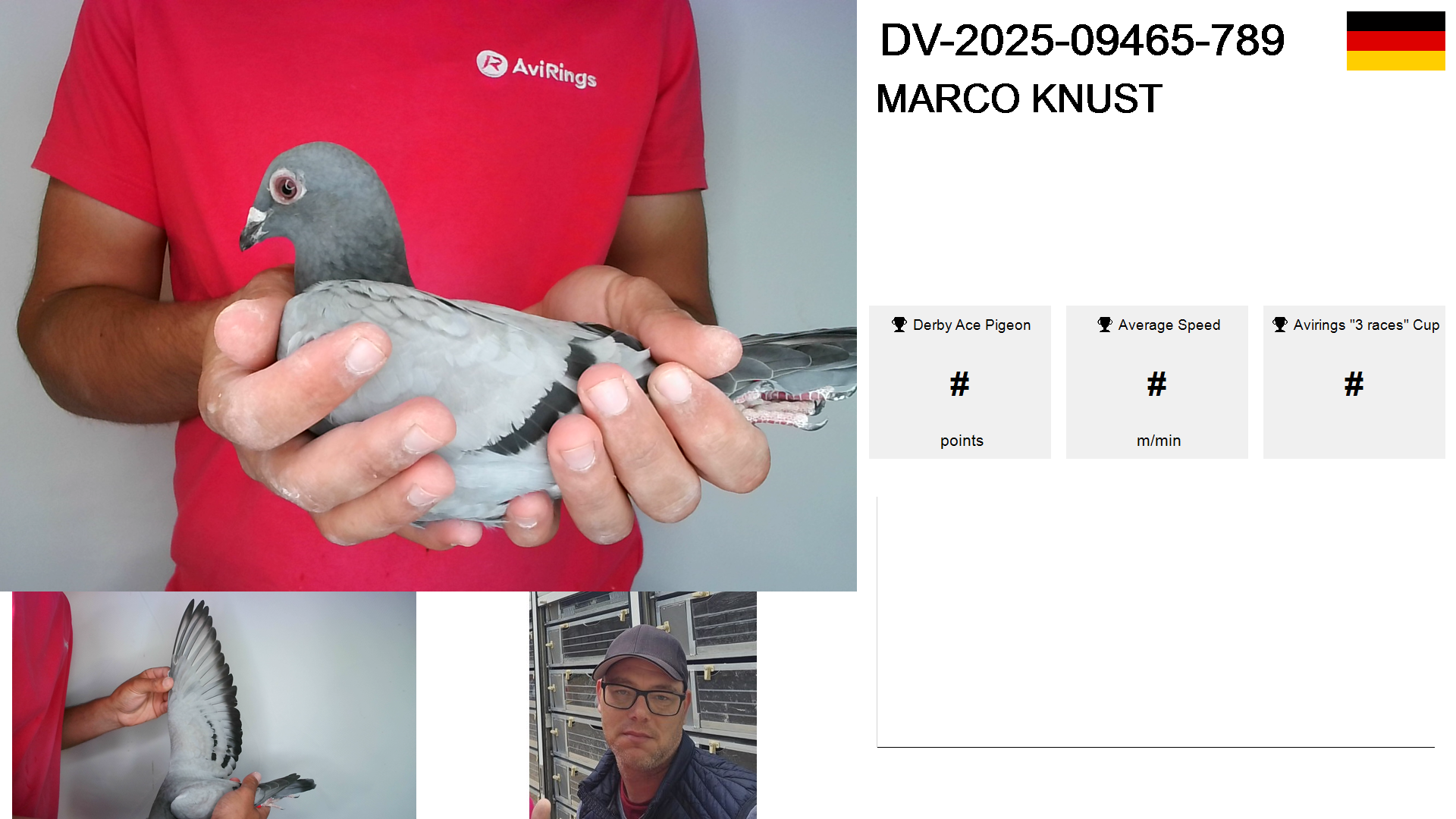 | Race | Position | Number of pigeons | Percent | Speed | Distance |