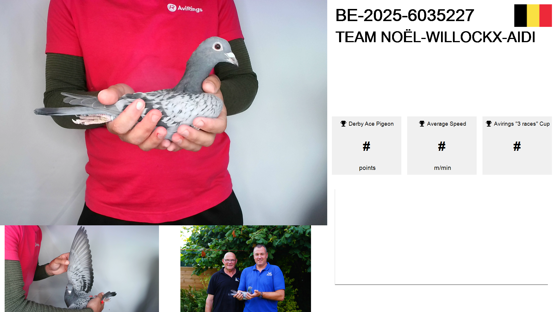 Race | Position | Number of pigeons | Percent | Speed | Distance |