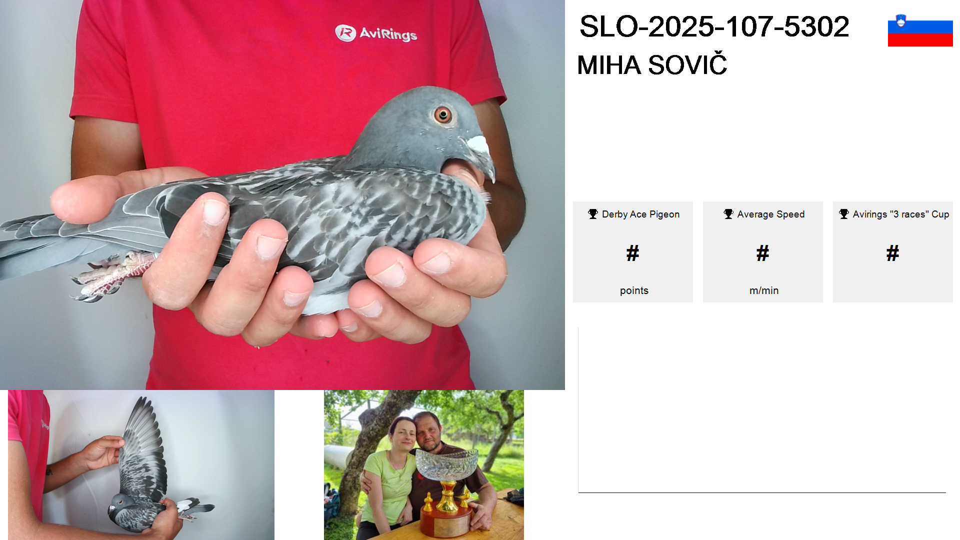 | Race | Position | Number of pigeons | Percent | Speed | Distance |