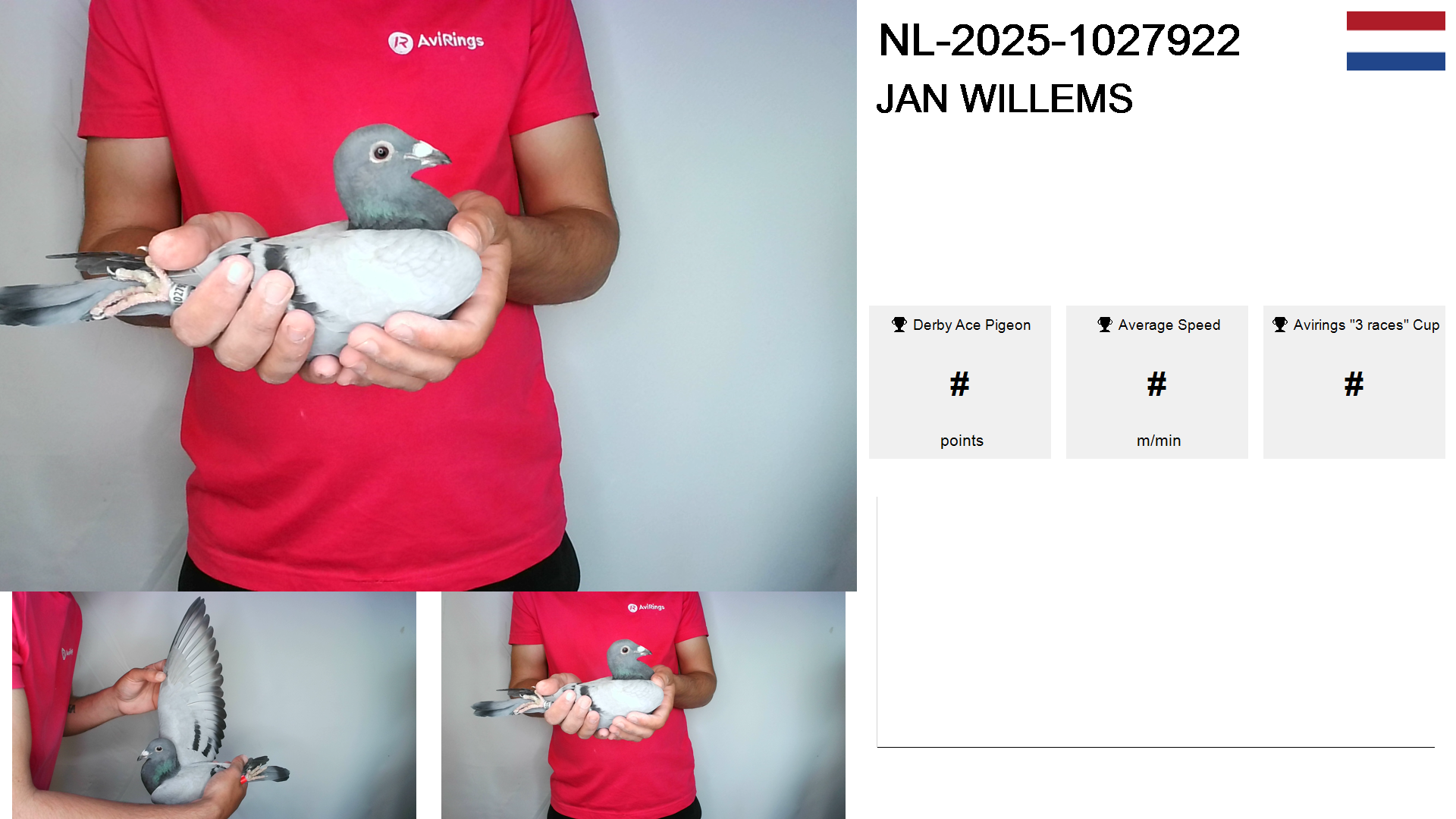| Race | Position | Number of pigeons | Percent | Speed | Distance |