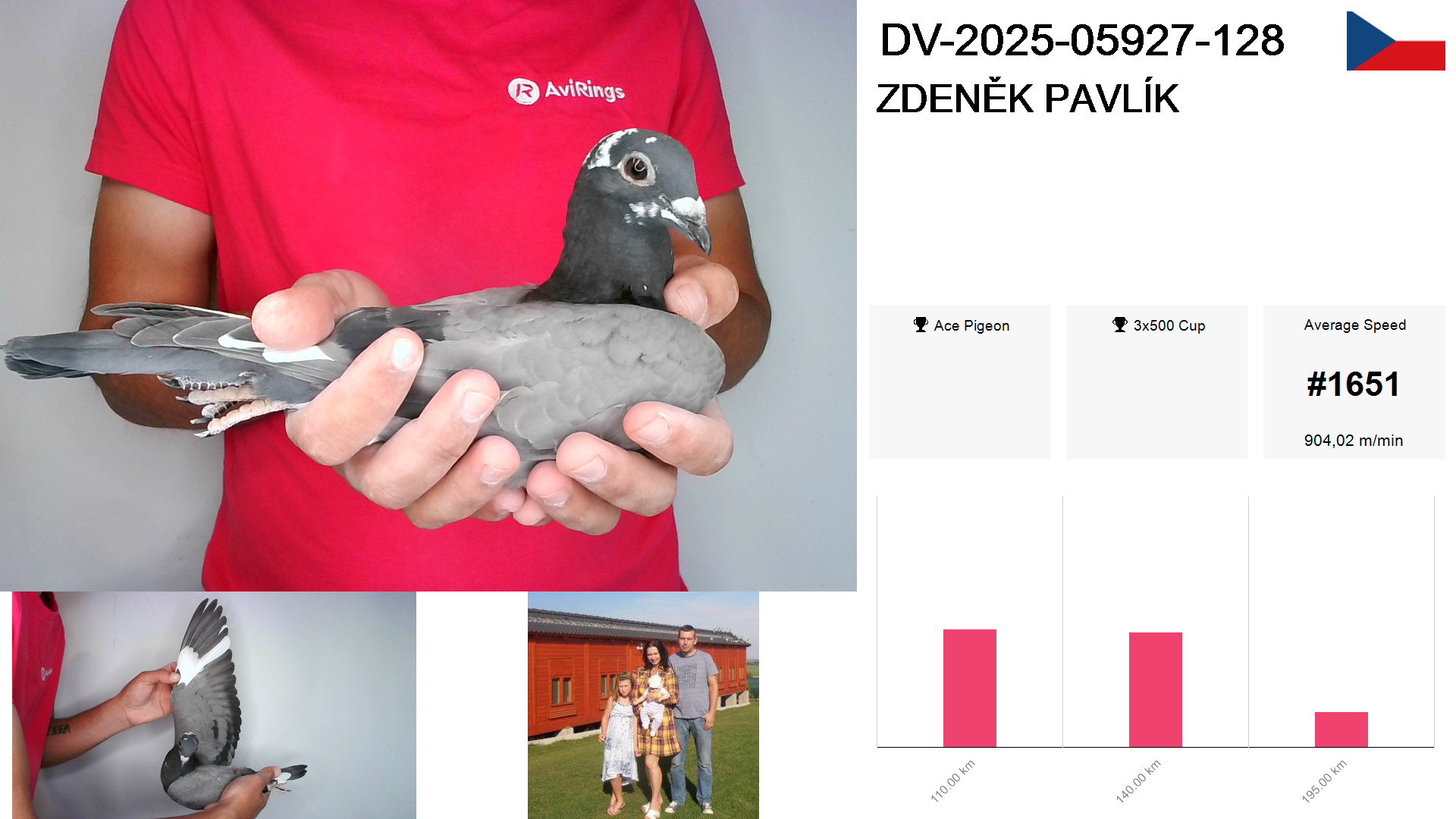 | Race | Position | Number of pigeons | Percent | Speed | Distance |