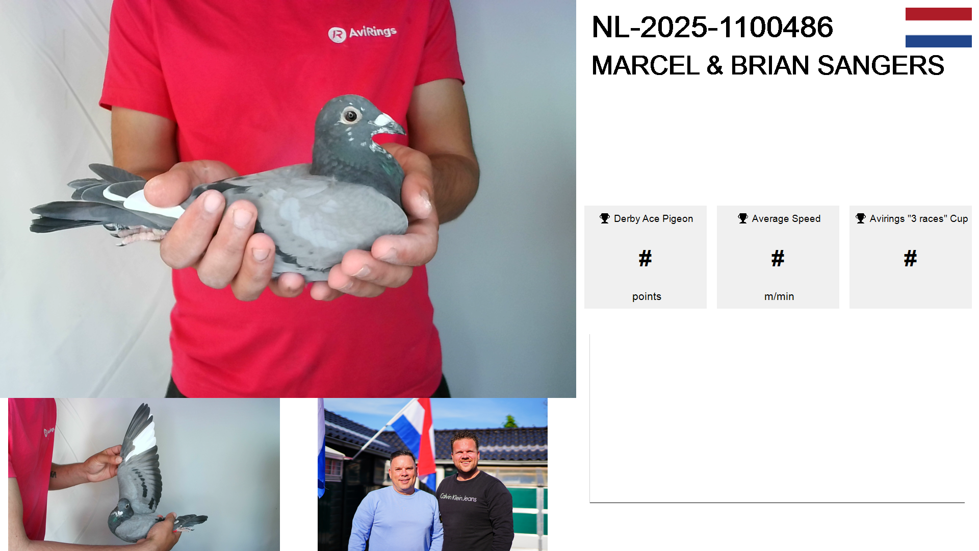 | Race | Position | Number of pigeons | Percent | Speed | Distance |