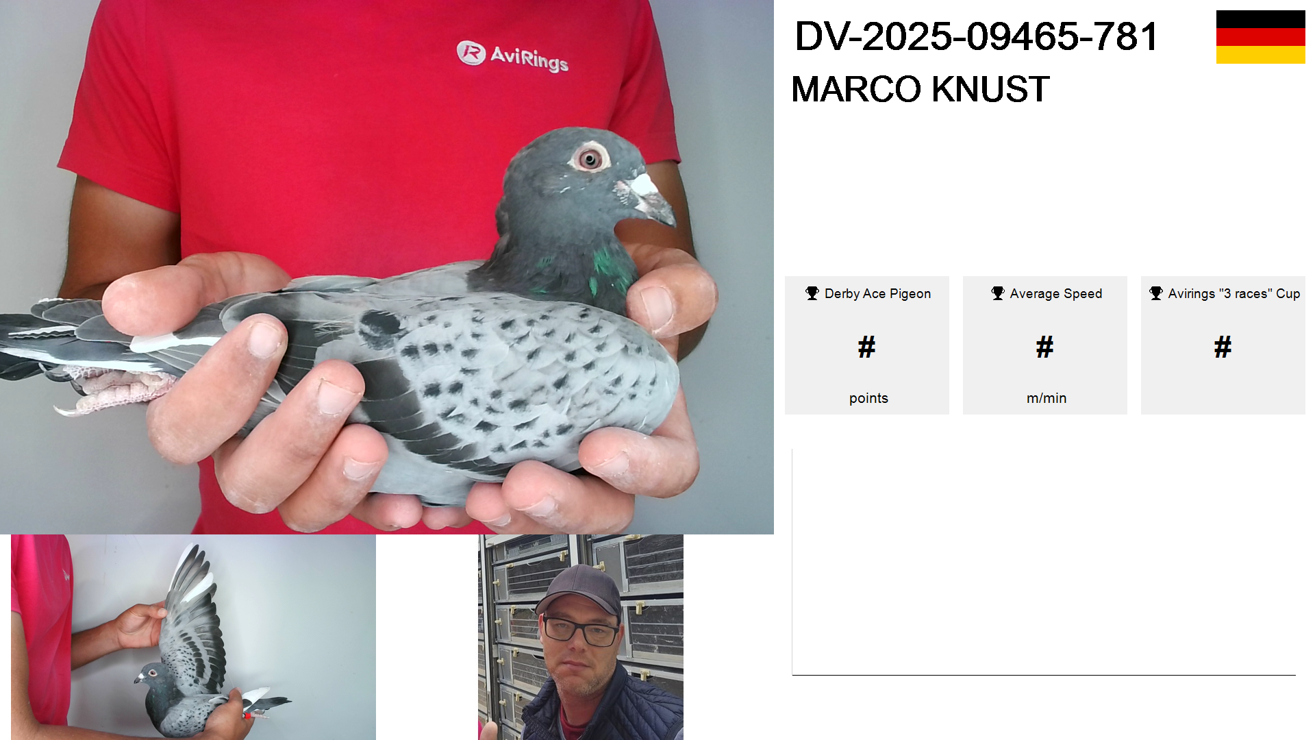| Race | Position | Number of pigeons | Percent | Speed | Distance |