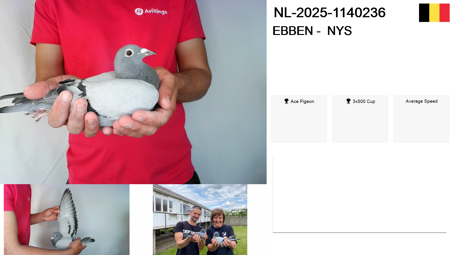 Race | Position | Number of pigeons | Percent | Speed | Distance |