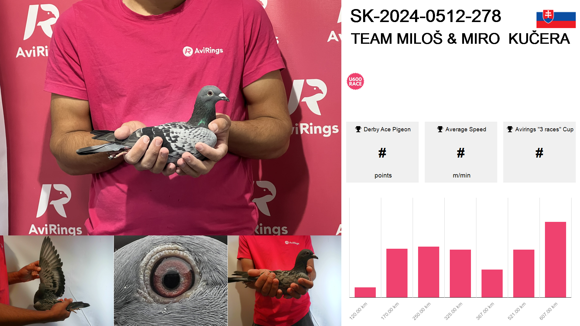 | Race | Position | Number of pigeons | Percent | Speed | Distance |