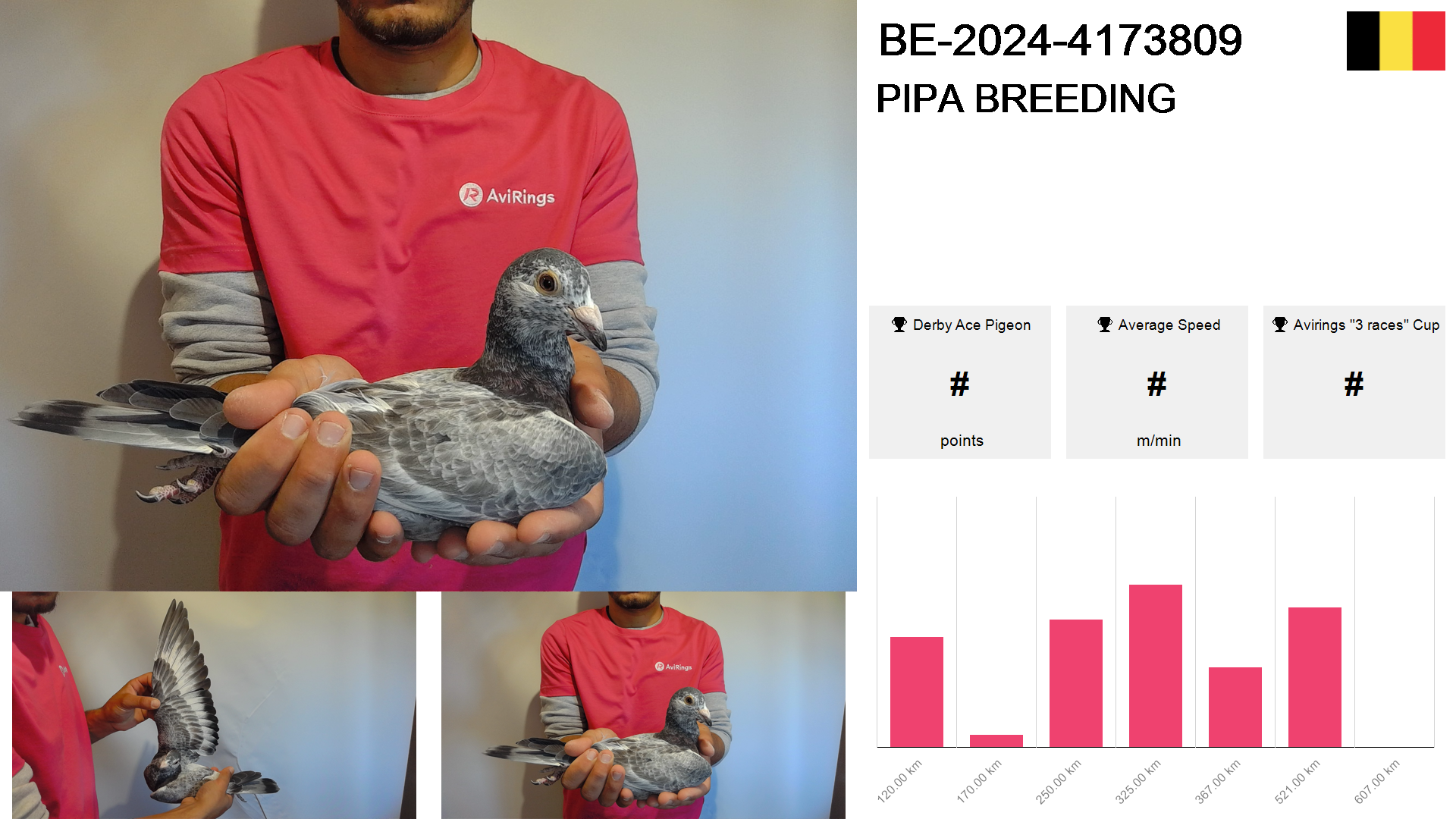 | Race | Position | Number of pigeons | Percent | Speed | Distance |