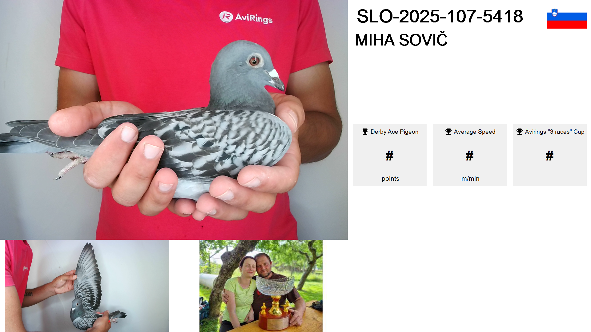 | Race | Position | Number of pigeons | Percent | Speed | Distance |
