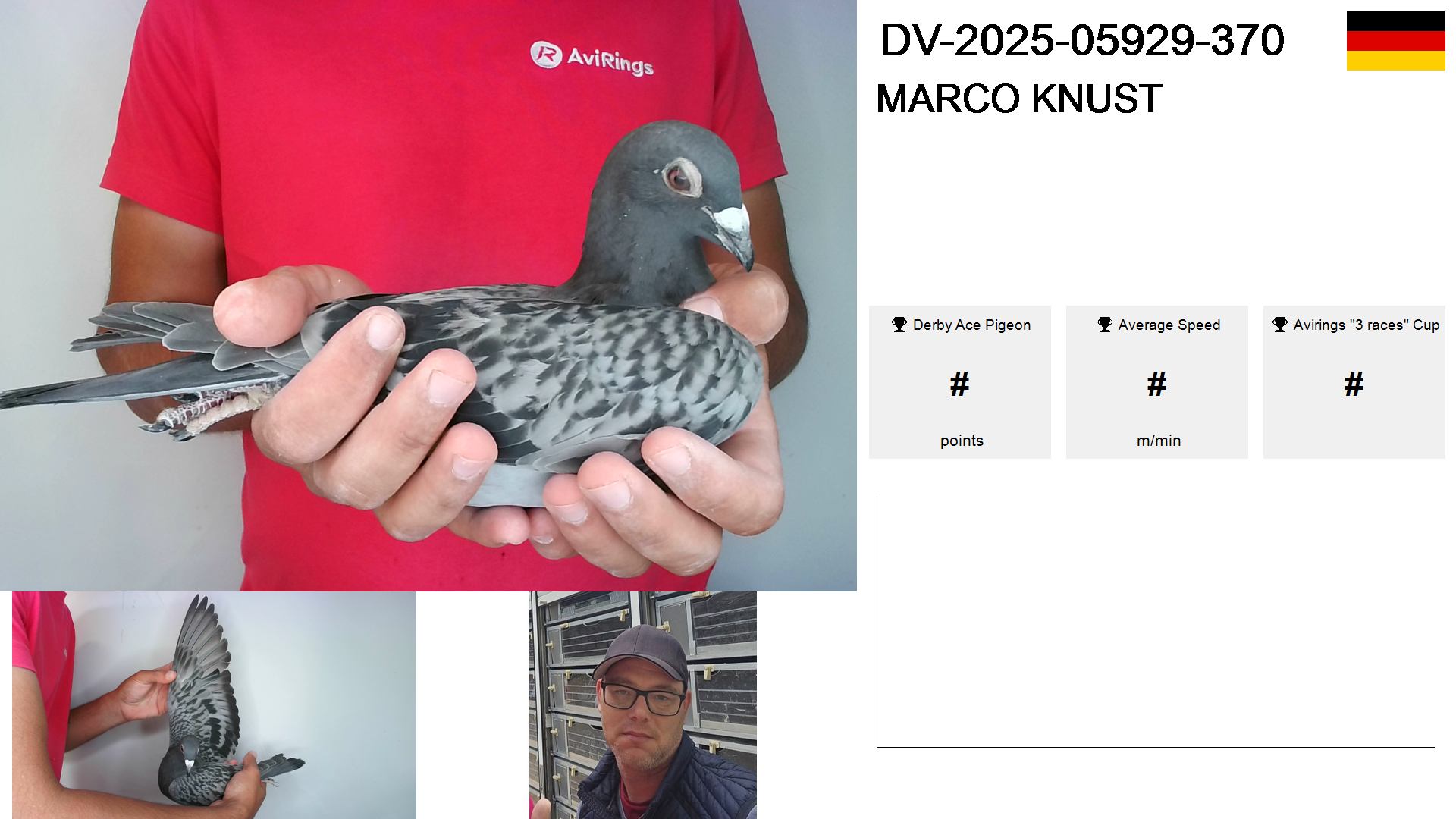 | Race | Position | Number of pigeons | Percent | Speed | Distance |