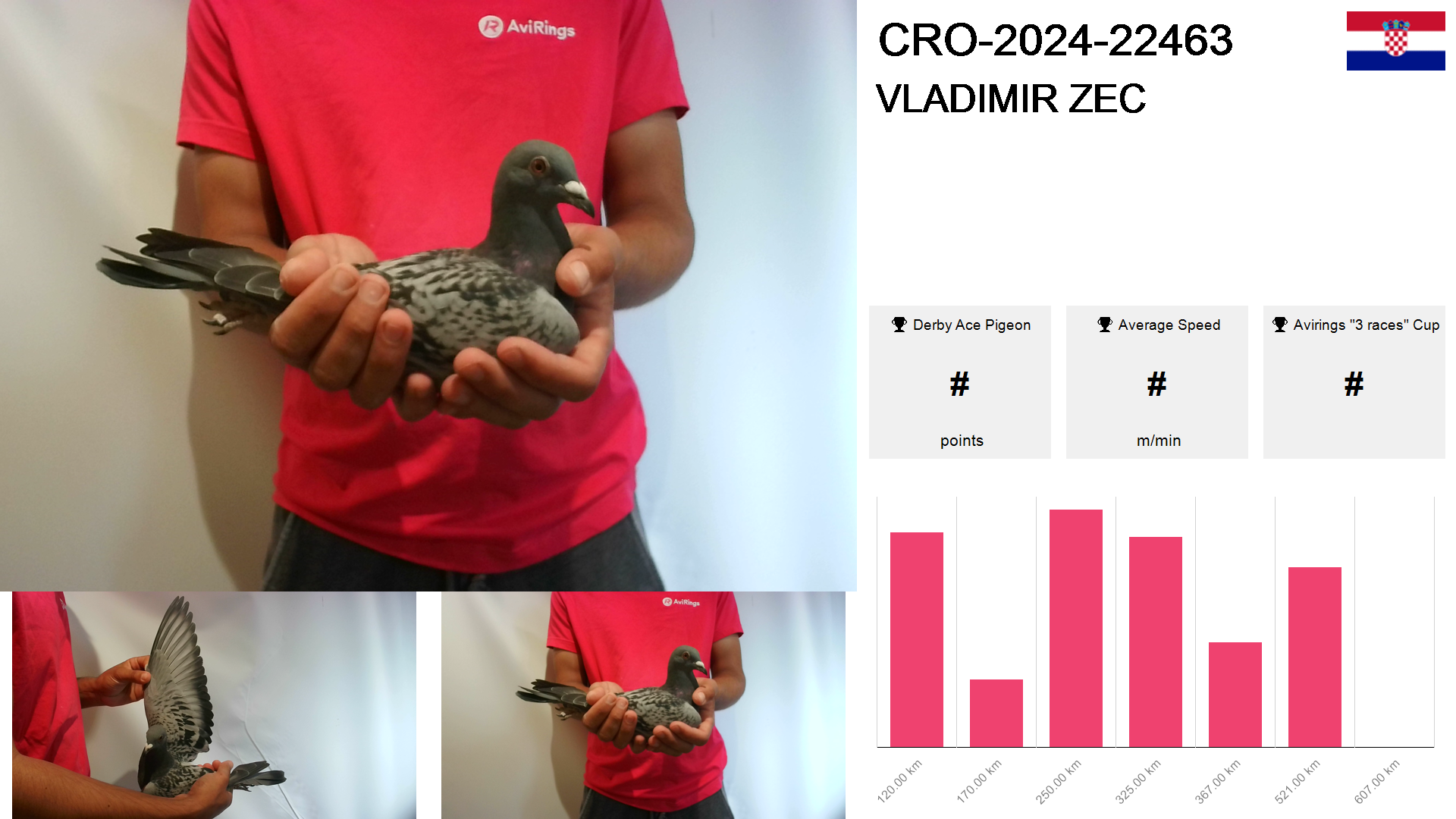 | Race | Position | Number of pigeons | Percent | Speed | Distance |