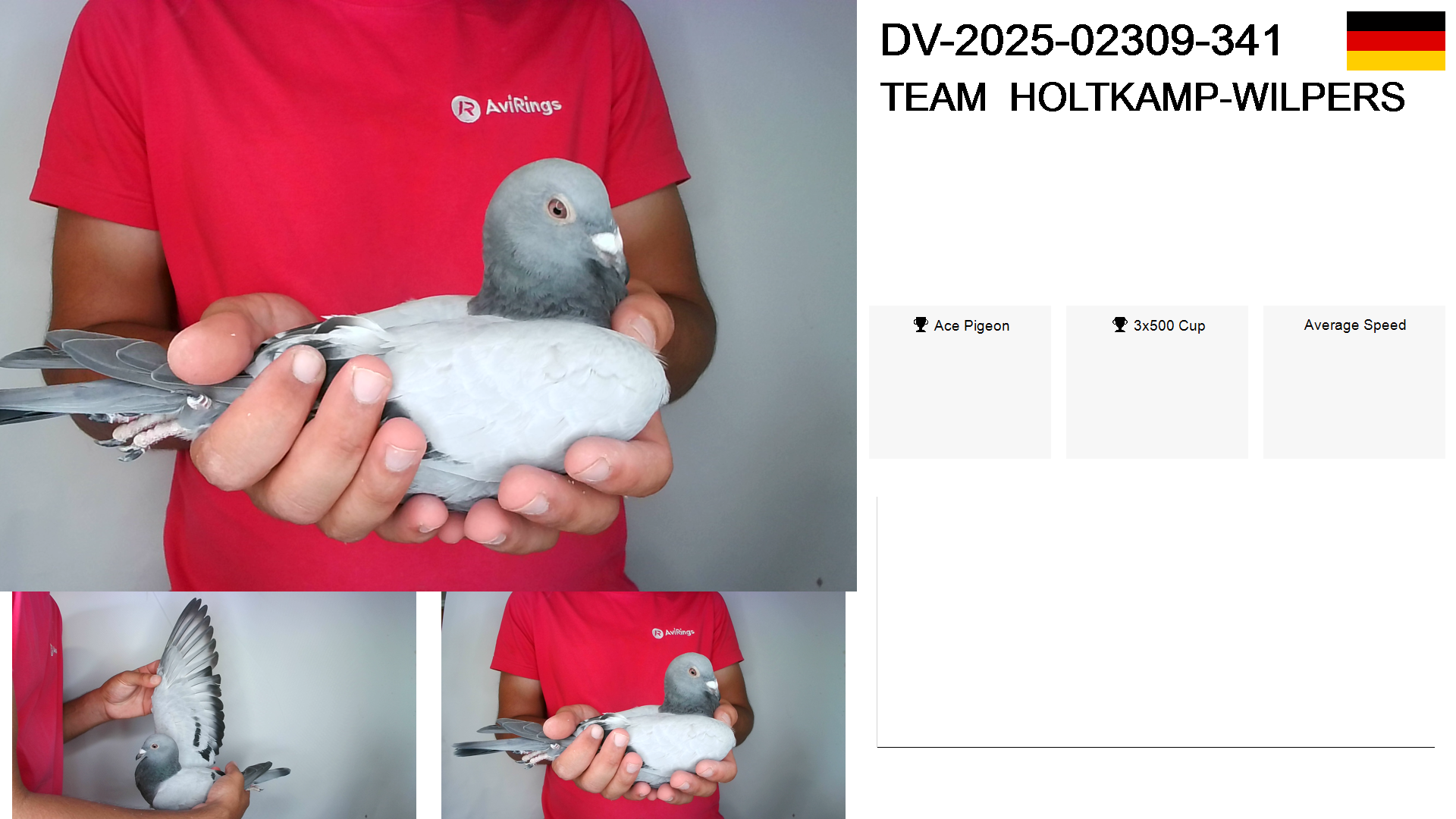 Race | Position | Number of pigeons | Percent | Speed | Distance |