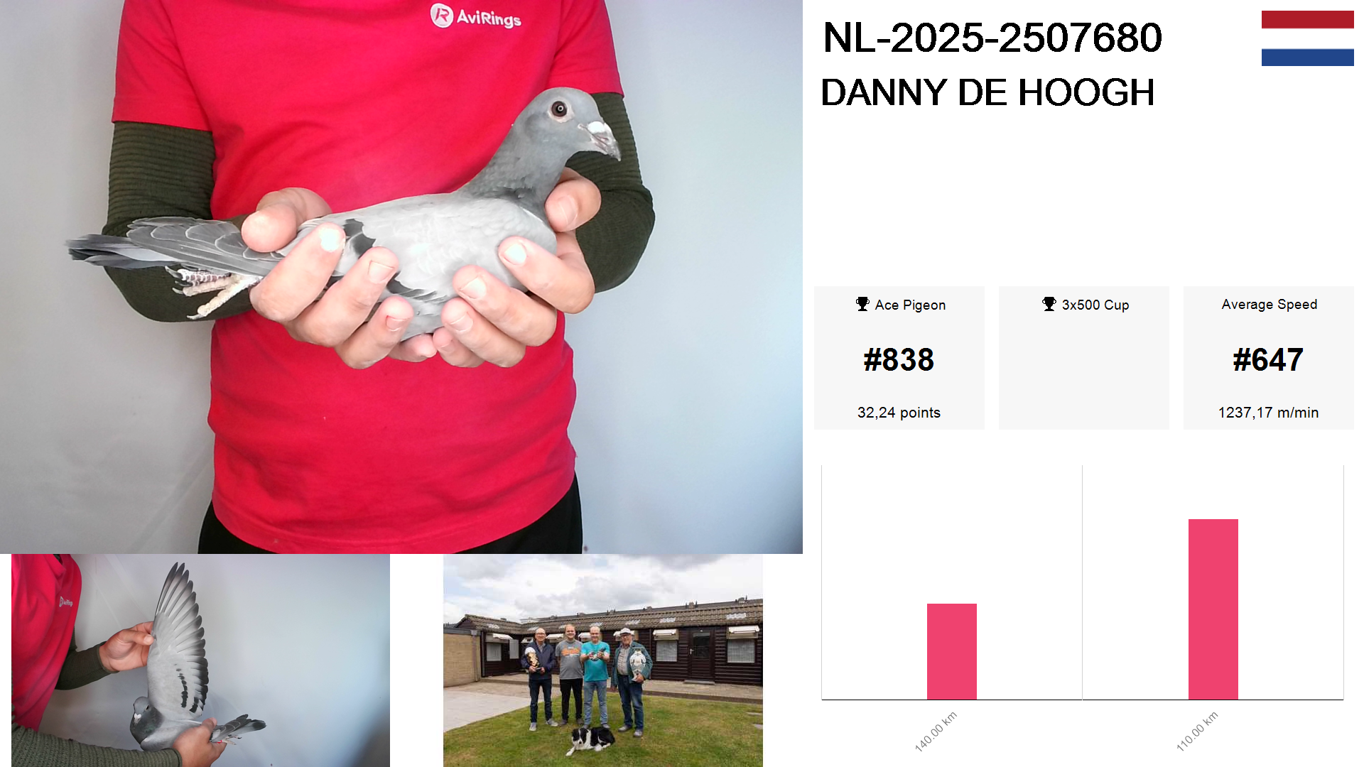 | Race | Position | Number of pigeons | Percent | Speed | Distance |