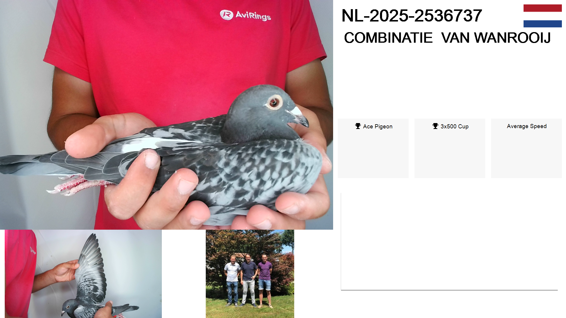 Race | Position | Number of pigeons | Percent | Speed | Distance |