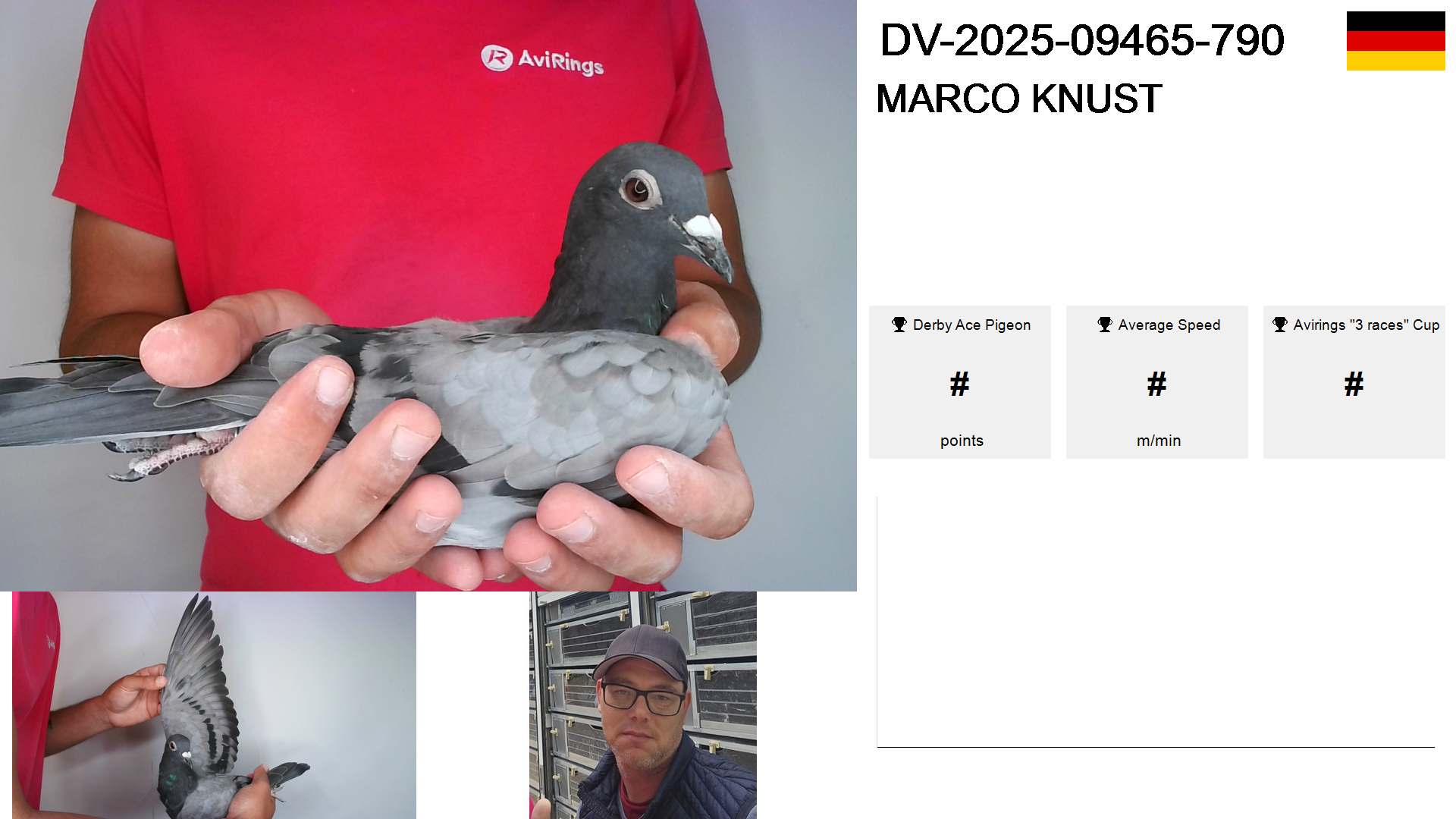 | Race | Position | Number of pigeons | Percent | Speed | Distance |