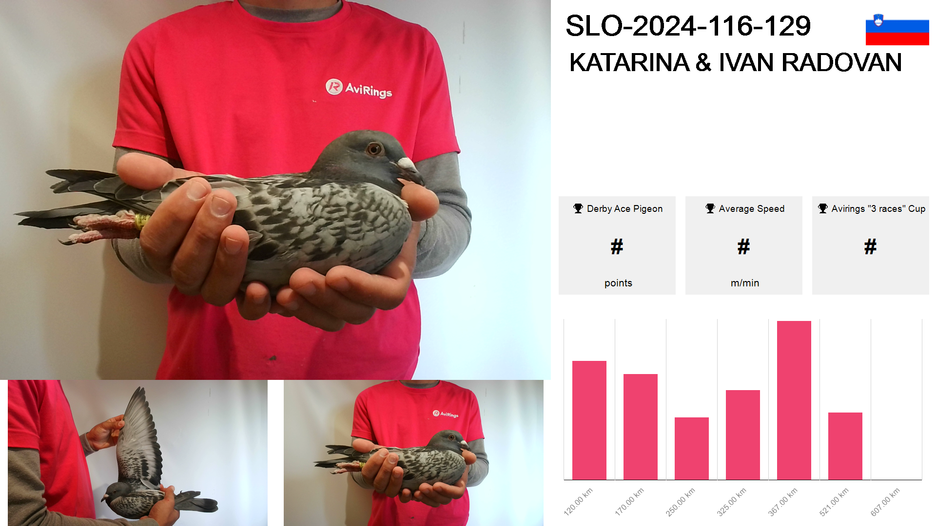 | Race | Position | Number of pigeons | Percent | Speed | Distance |