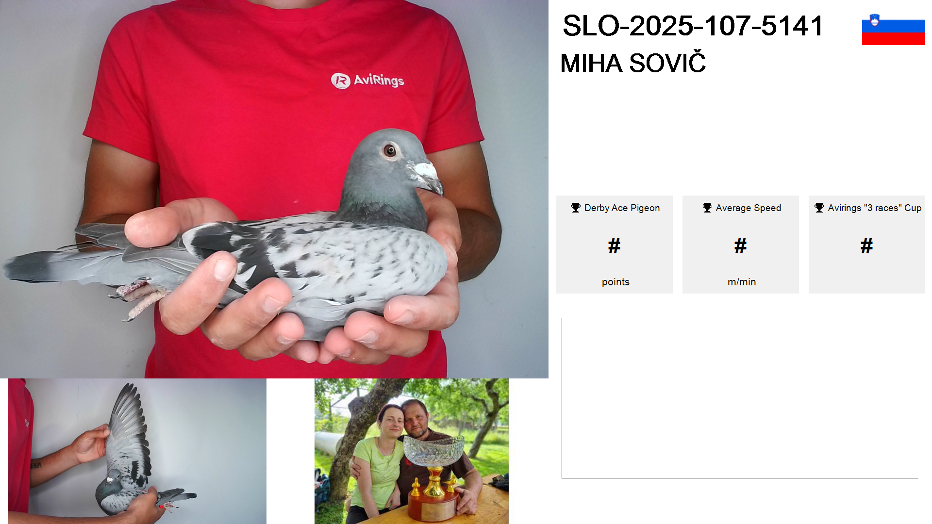| Race | Position | Number of pigeons | Percent | Speed | Distance |