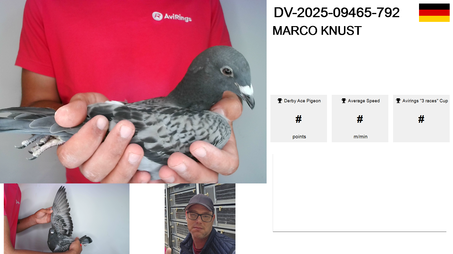 | Race | Position | Number of pigeons | Percent | Speed | Distance |