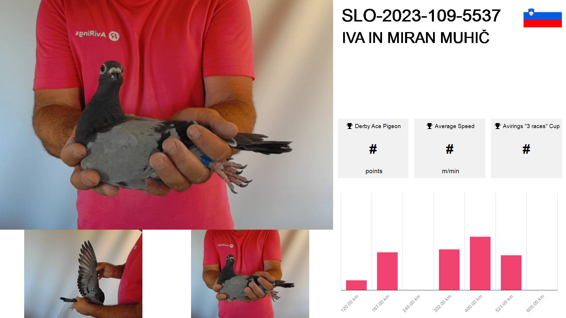 | Race | Position | Number of pigeons | Percent | Speed | Distance |