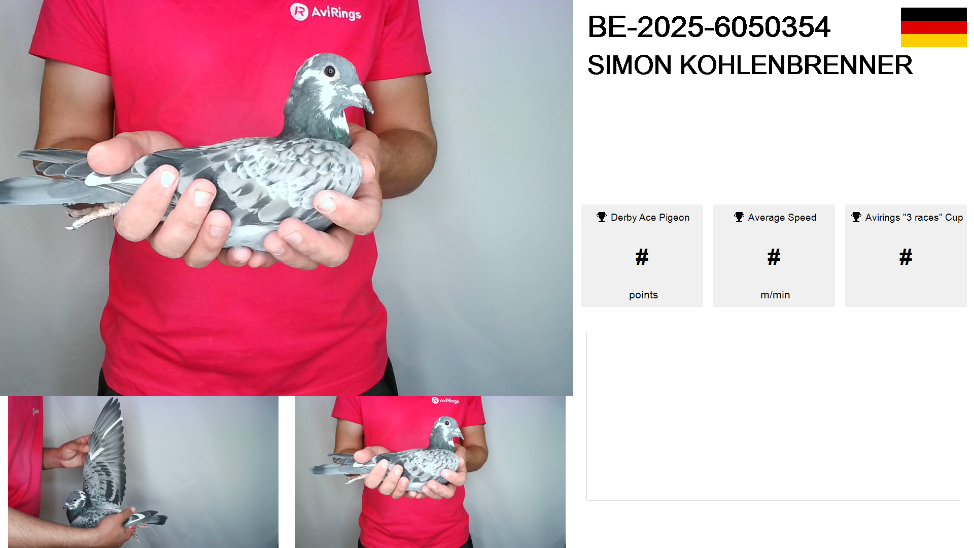 | Race | Position | Number of pigeons | Percent | Speed | Distance |