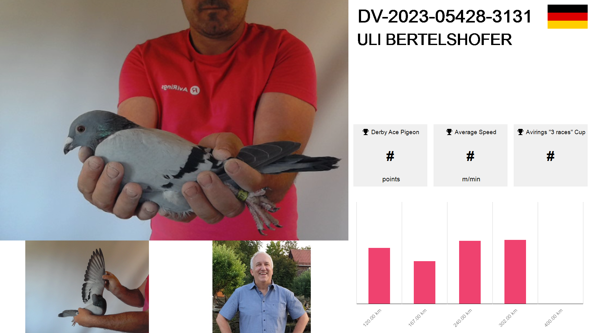| Race | Position | Number of pigeons | Percent | Speed | Distance |