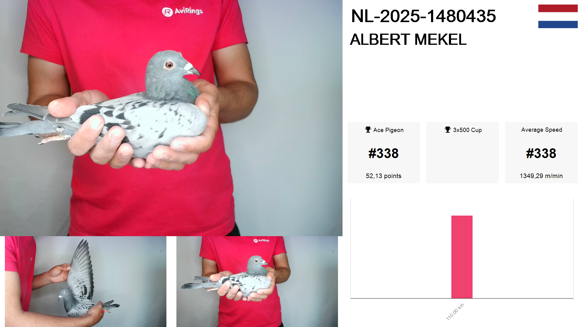 | Race | Position | Number of pigeons | Percent | Speed | Distance |