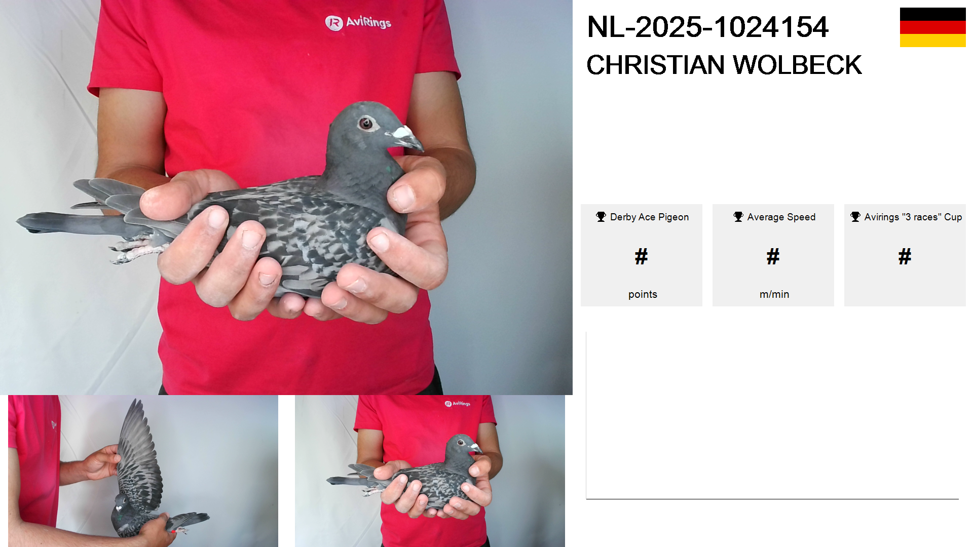 | Race | Position | Number of pigeons | Percent | Speed | Distance |