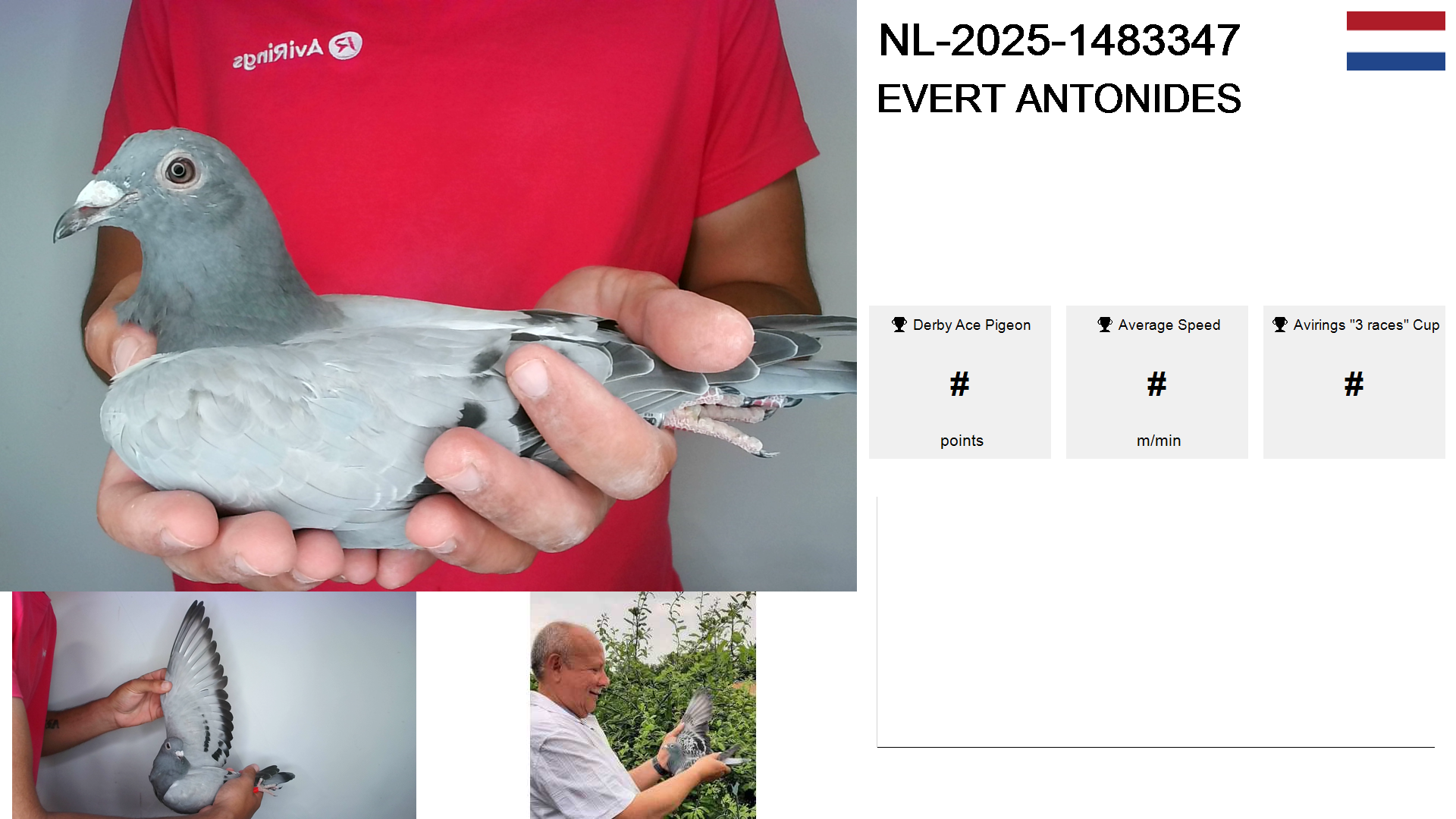 | Race | Position | Number of pigeons | Percent | Speed | Distance |
