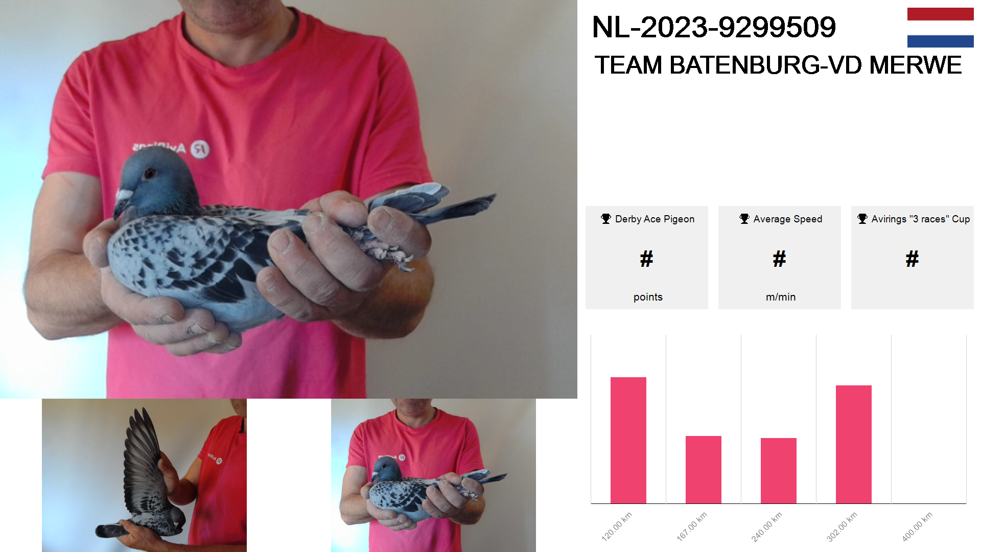 | Race | Position | Number of pigeons | Percent | Speed | Distance |