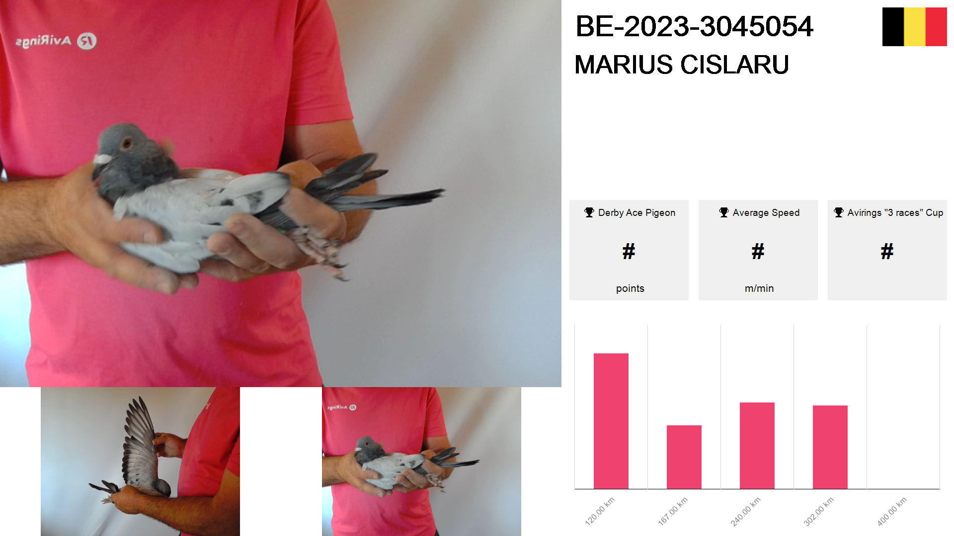 | Race | Position | Number of pigeons | Percent | Speed | Distance |