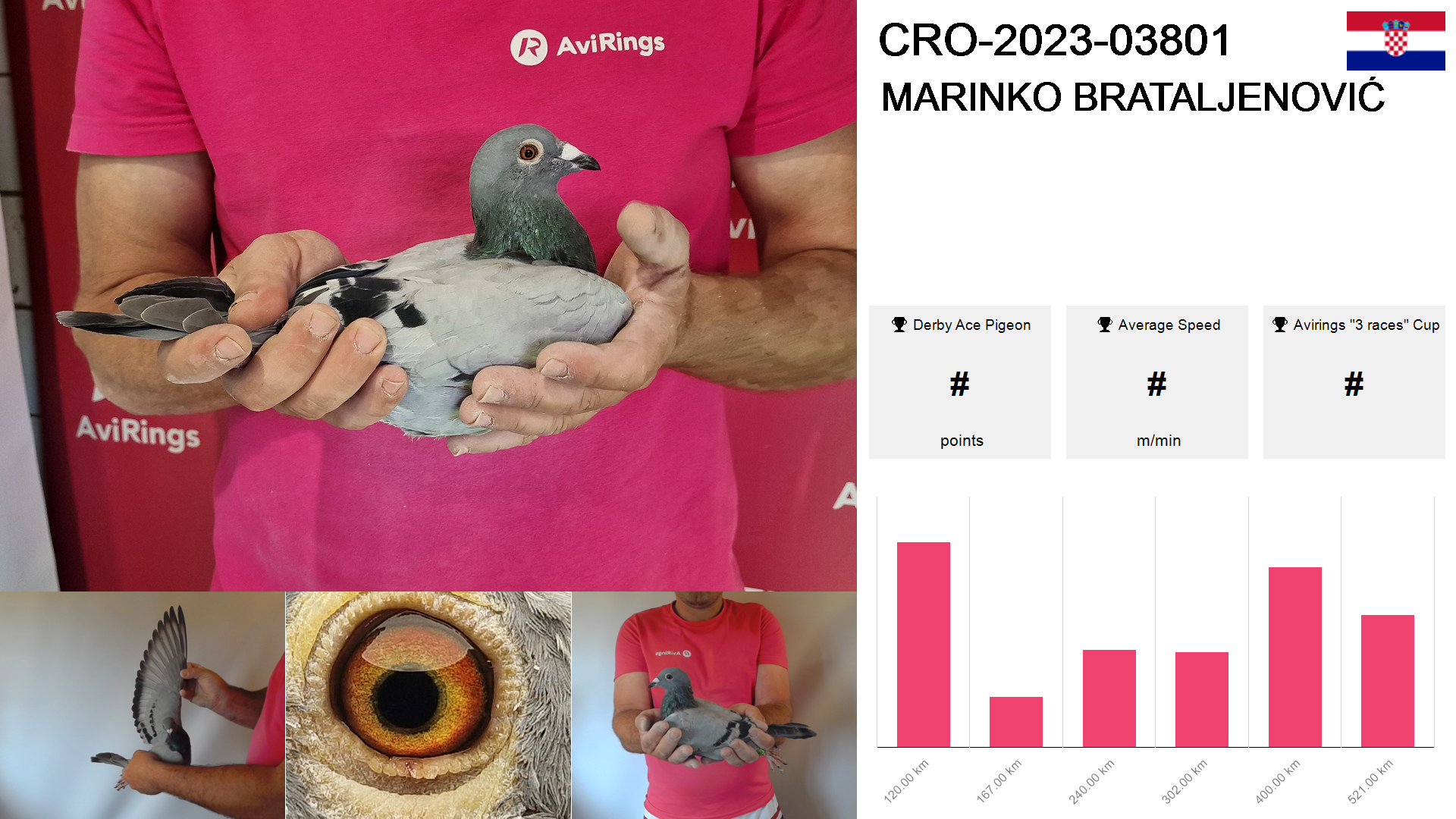 | Race | Position | Number of pigeons | Percent | Speed | Distance |
