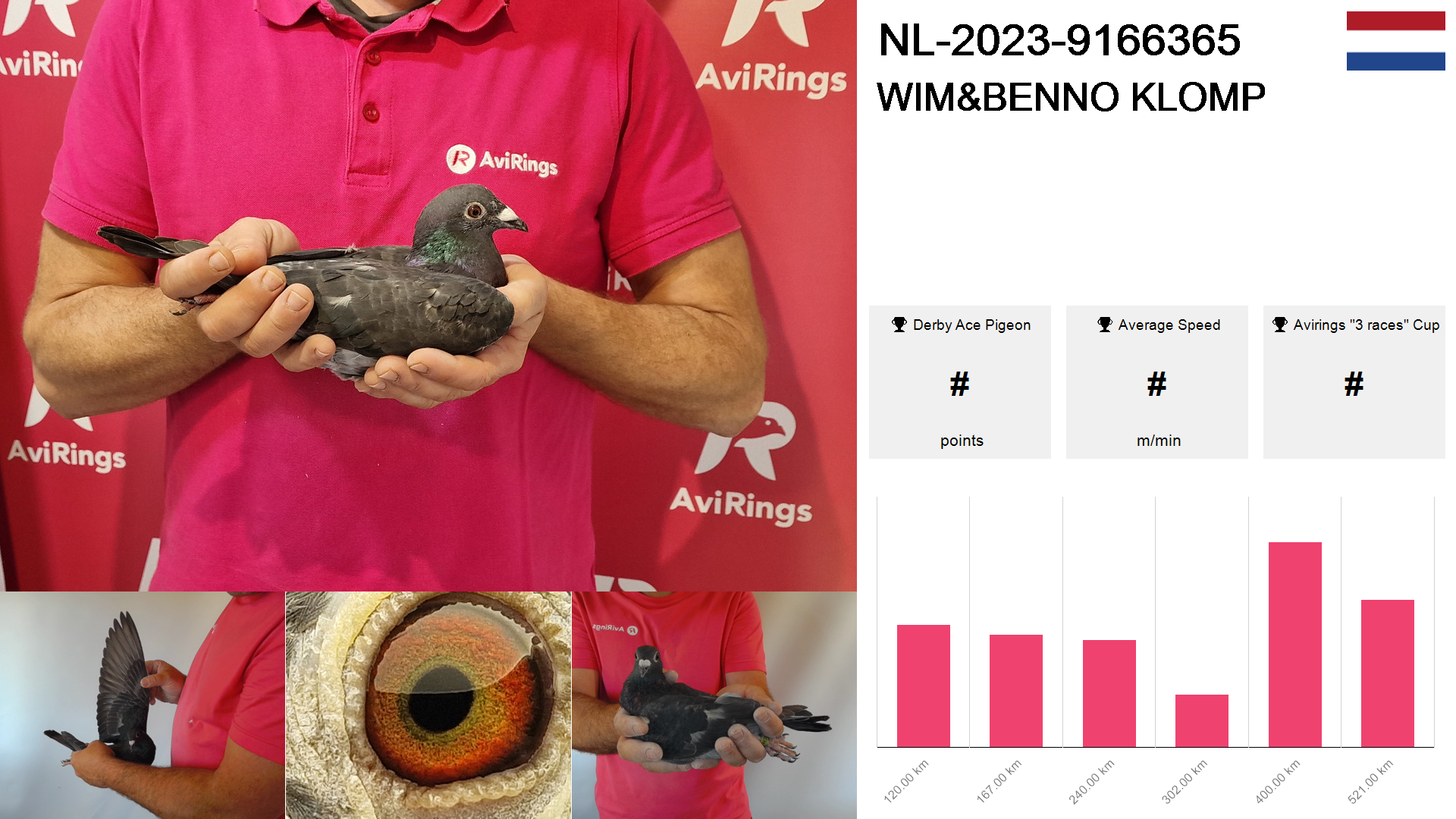 | Race | Position | Number of pigeons | Percent | Speed | Distance |