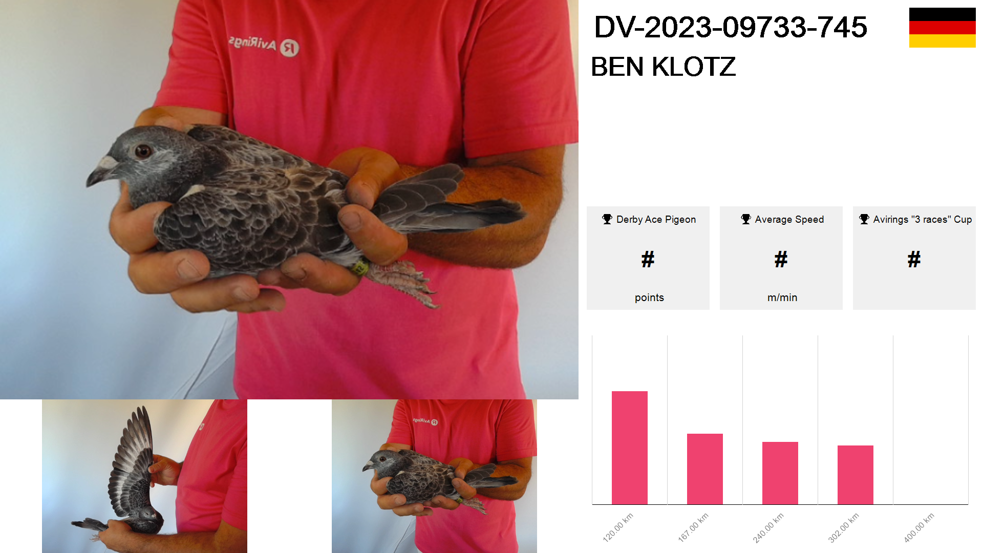 | Race | Position | Number of pigeons | Percent | Speed | Distance |