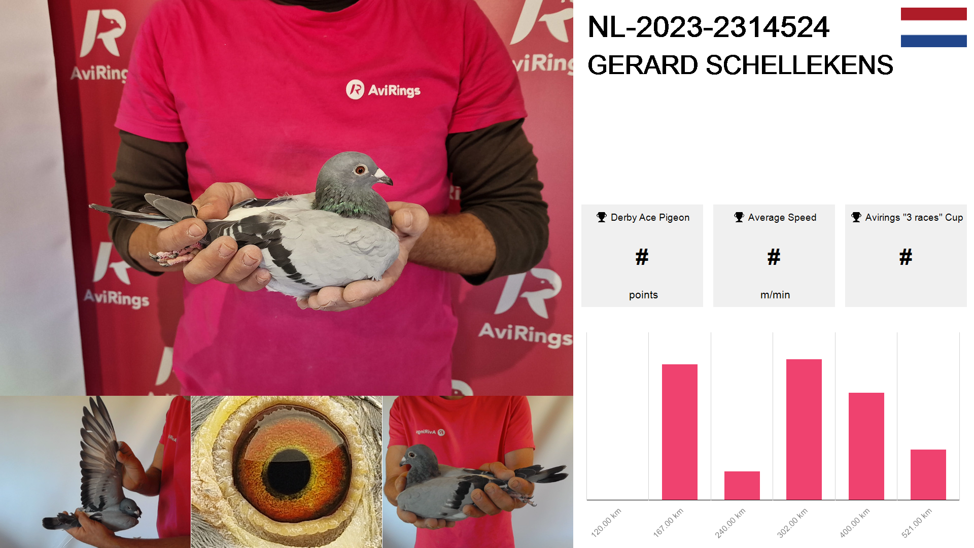 | Race | Position | Number of pigeons | Percent | Speed | Distance |