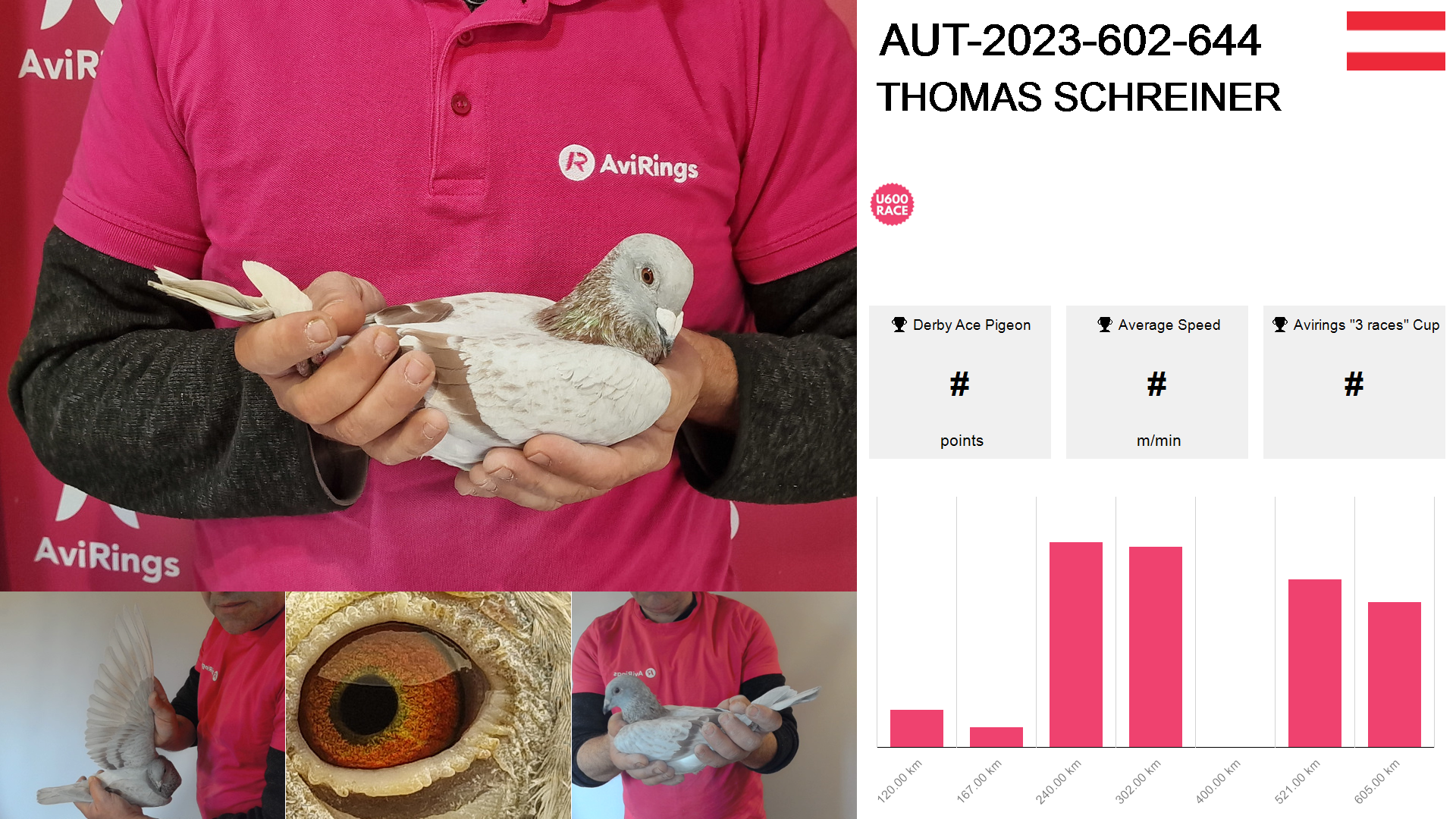 | Race | Position | Number of pigeons | Percent | Speed | Distance |