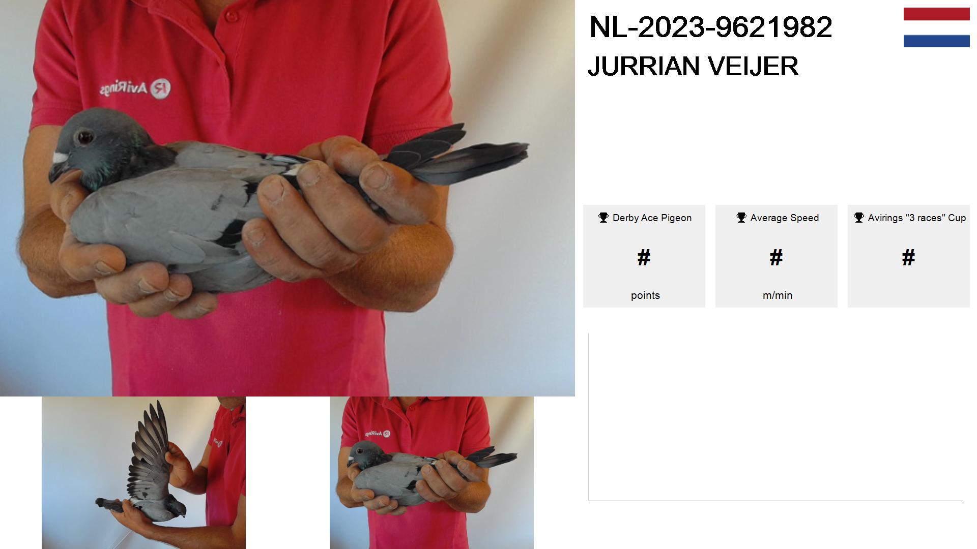 | Race | Position | Number of pigeons | Percent | Speed | Distance |
