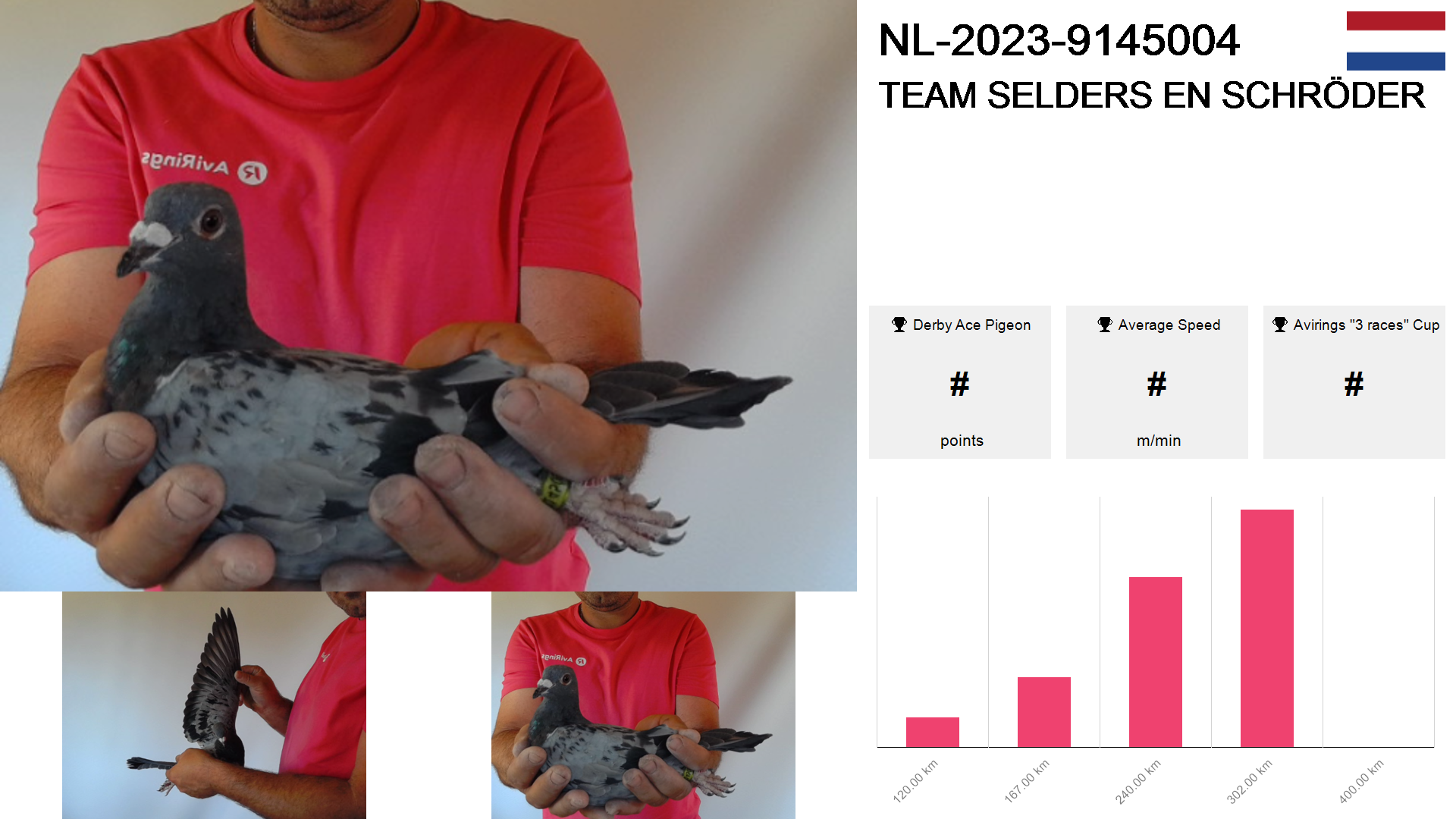 | Race | Position | Number of pigeons | Percent | Speed | Distance |