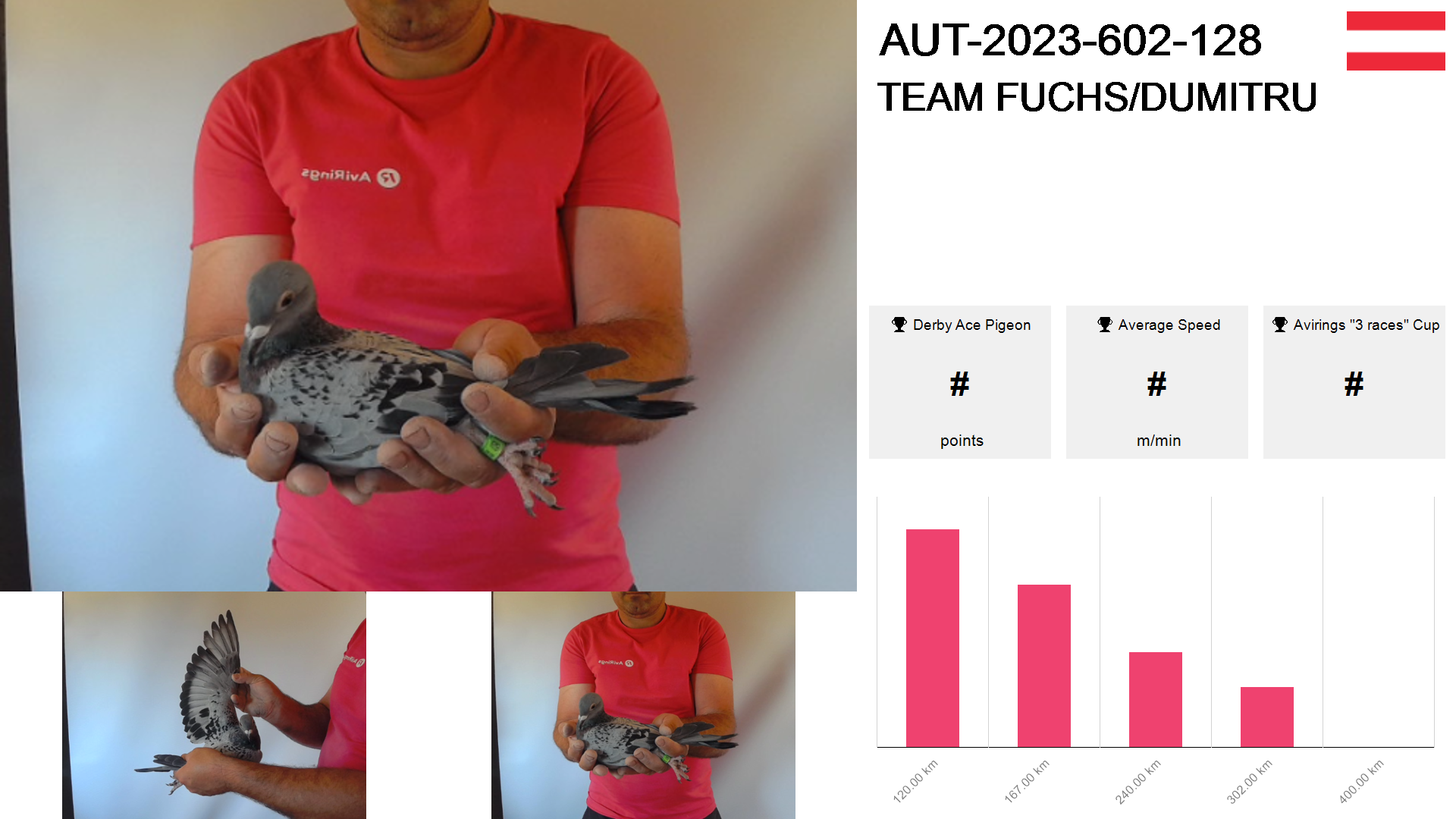 | Race | Position | Number of pigeons | Percent | Speed | Distance |