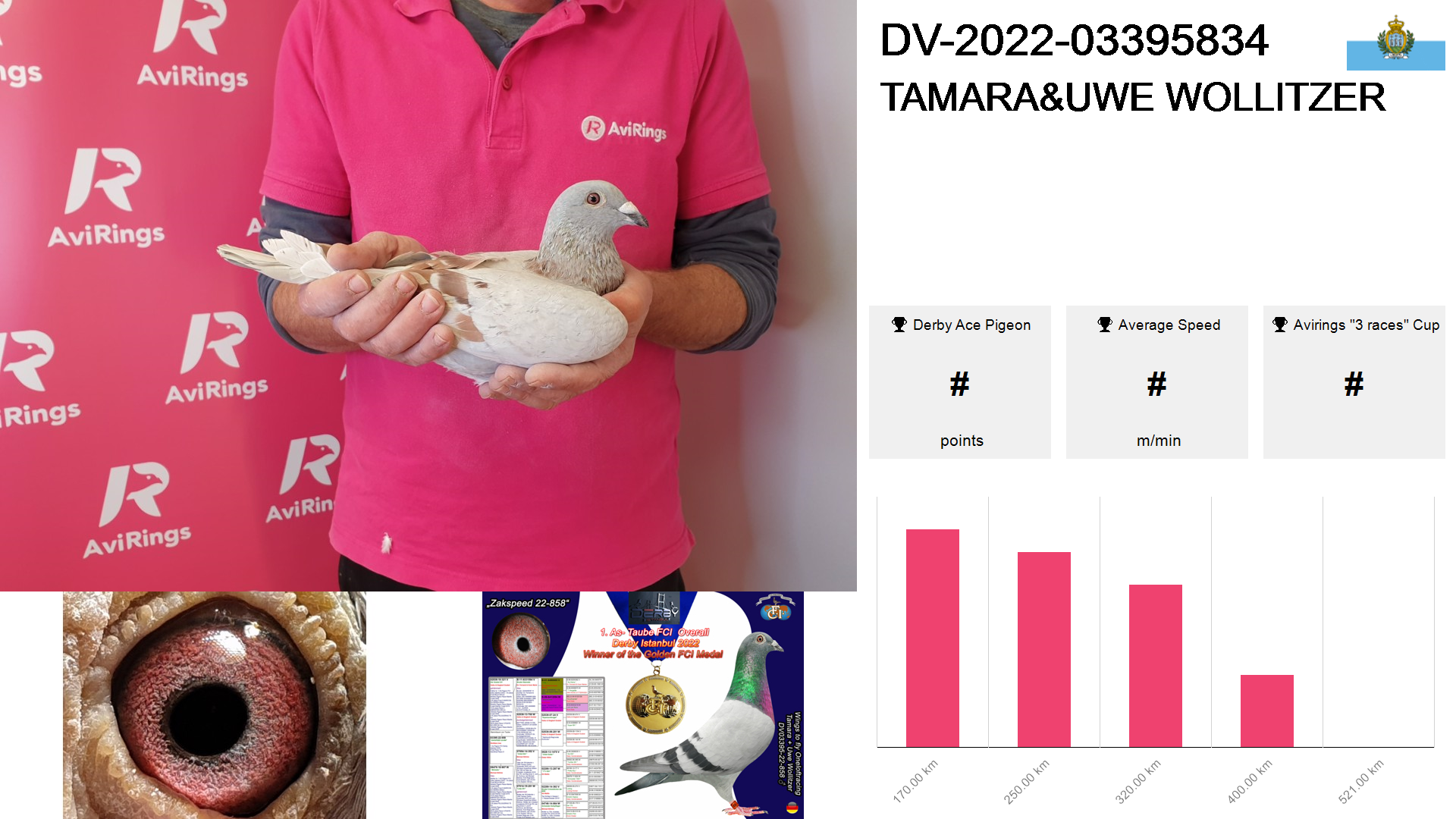 | Race | Position | Number of pigeons | Percent | Speed | Distance |