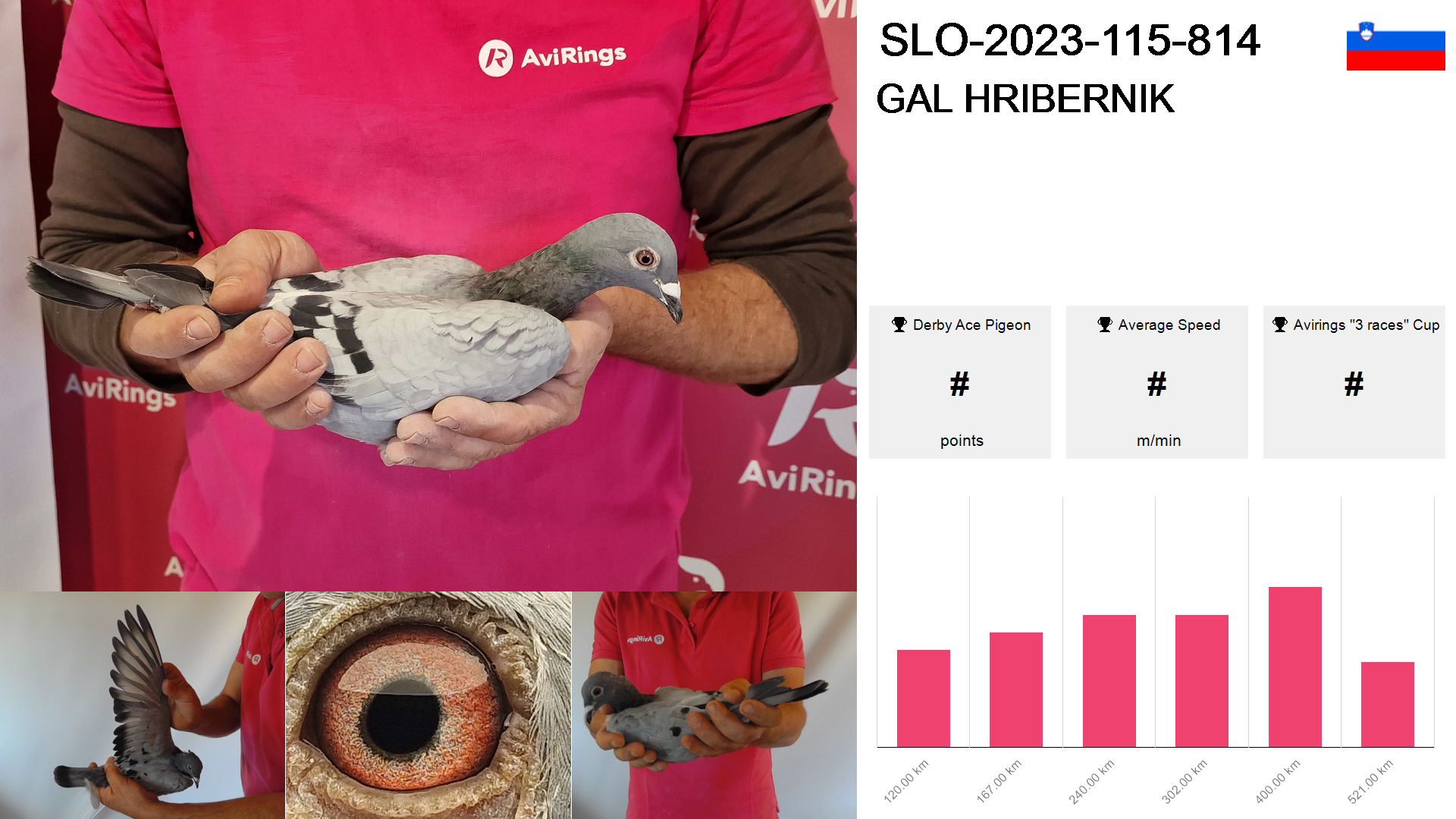 | Race | Position | Number of pigeons | Percent | Speed | Distance |
