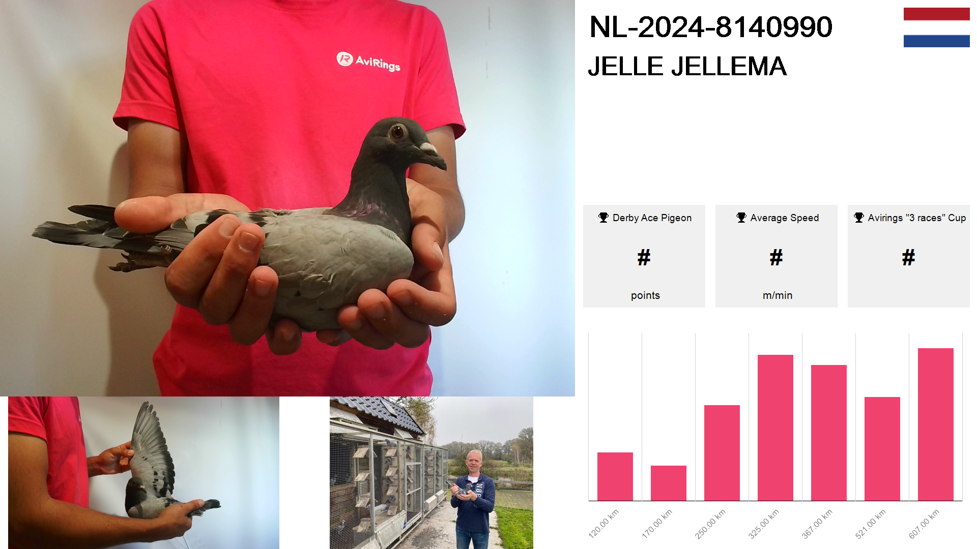 | Race | Position | Number of pigeons | Percent | Speed | Distance |