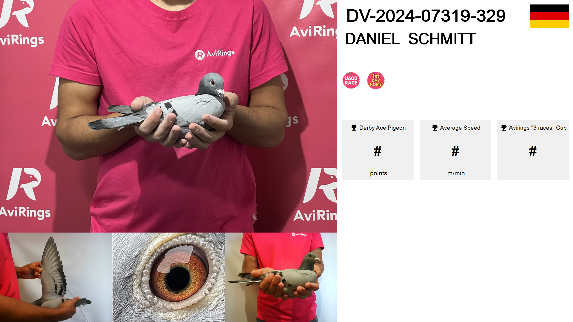 | Race | Position | Number of pigeons | Percent | Speed | Distance |