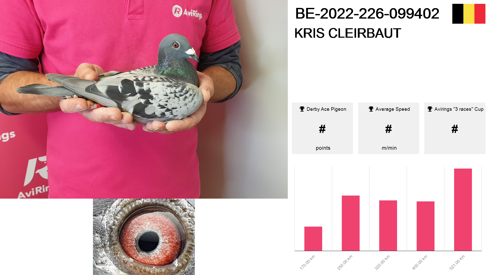| Race | Position | Number of pigeons | Percent | Speed | Distance |
