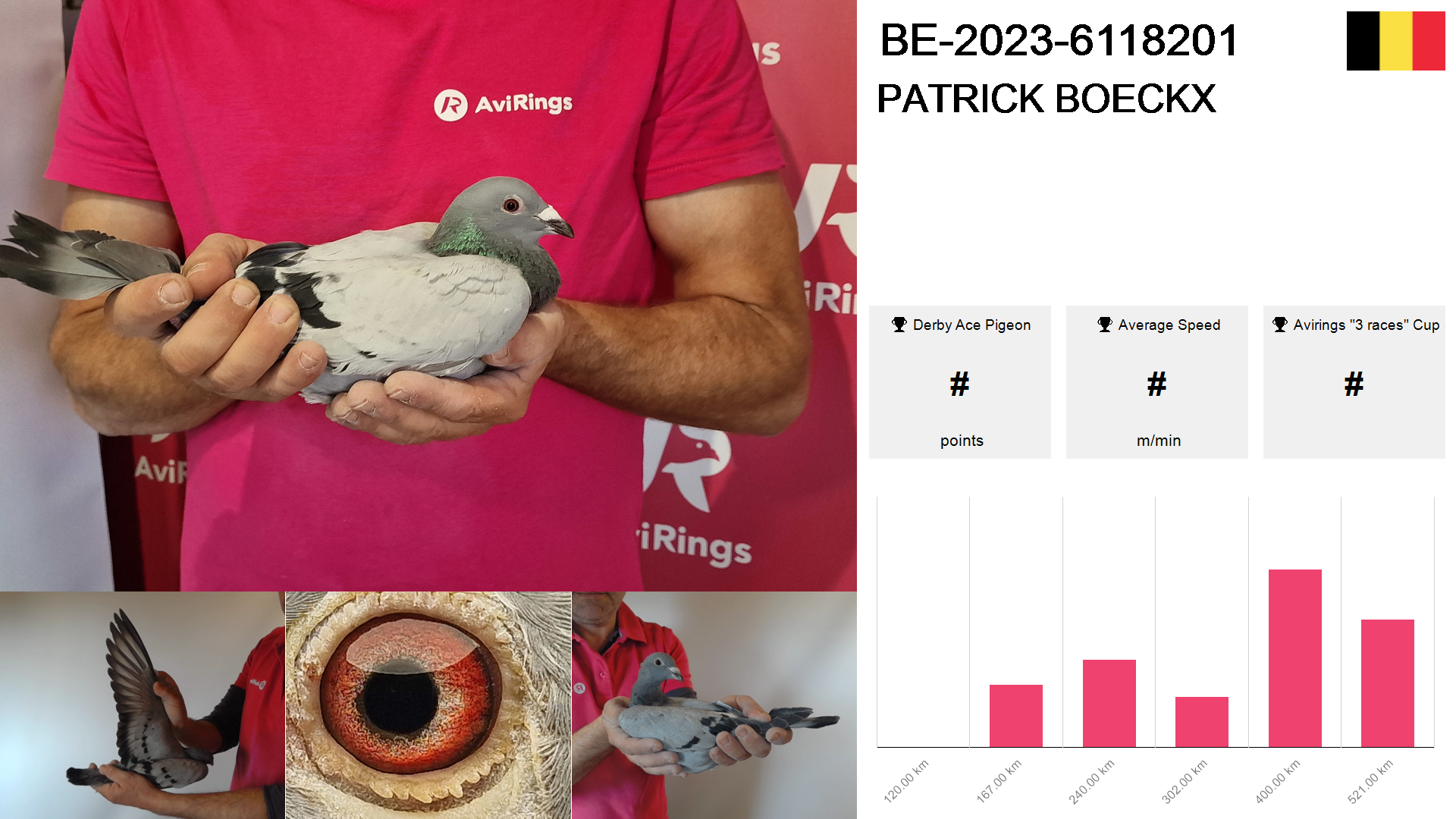 | Race | Position | Number of pigeons | Percent | Speed | Distance |
