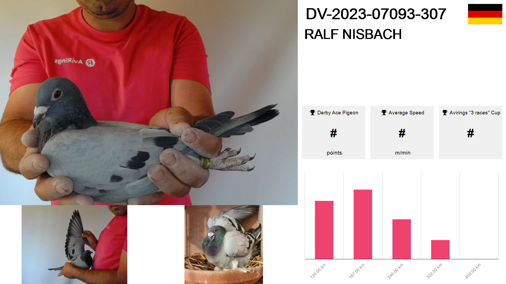| Race | Position | Number of pigeons | Percent | Speed | Distance |
