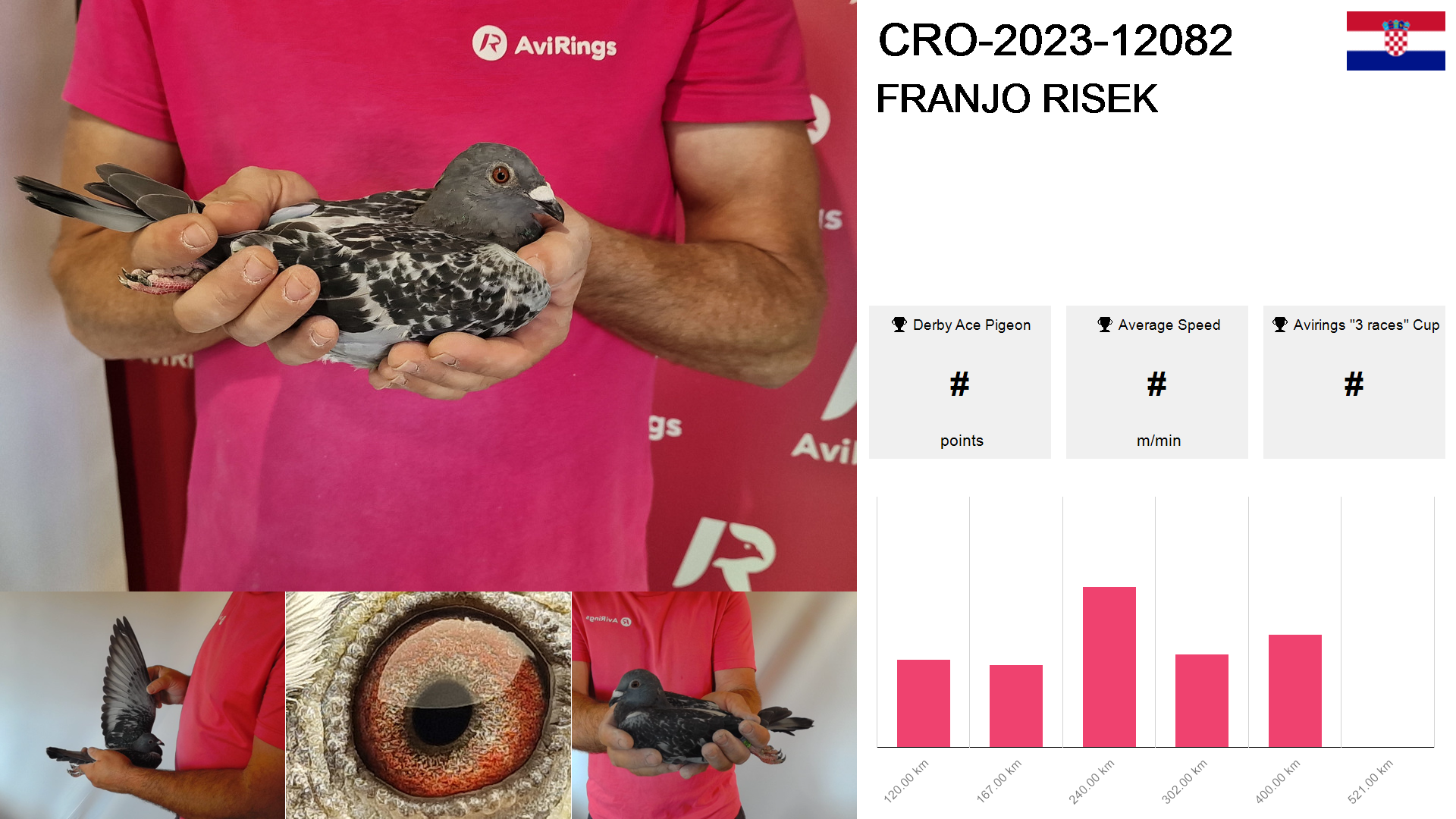 | Race | Position | Number of pigeons | Percent | Speed | Distance |